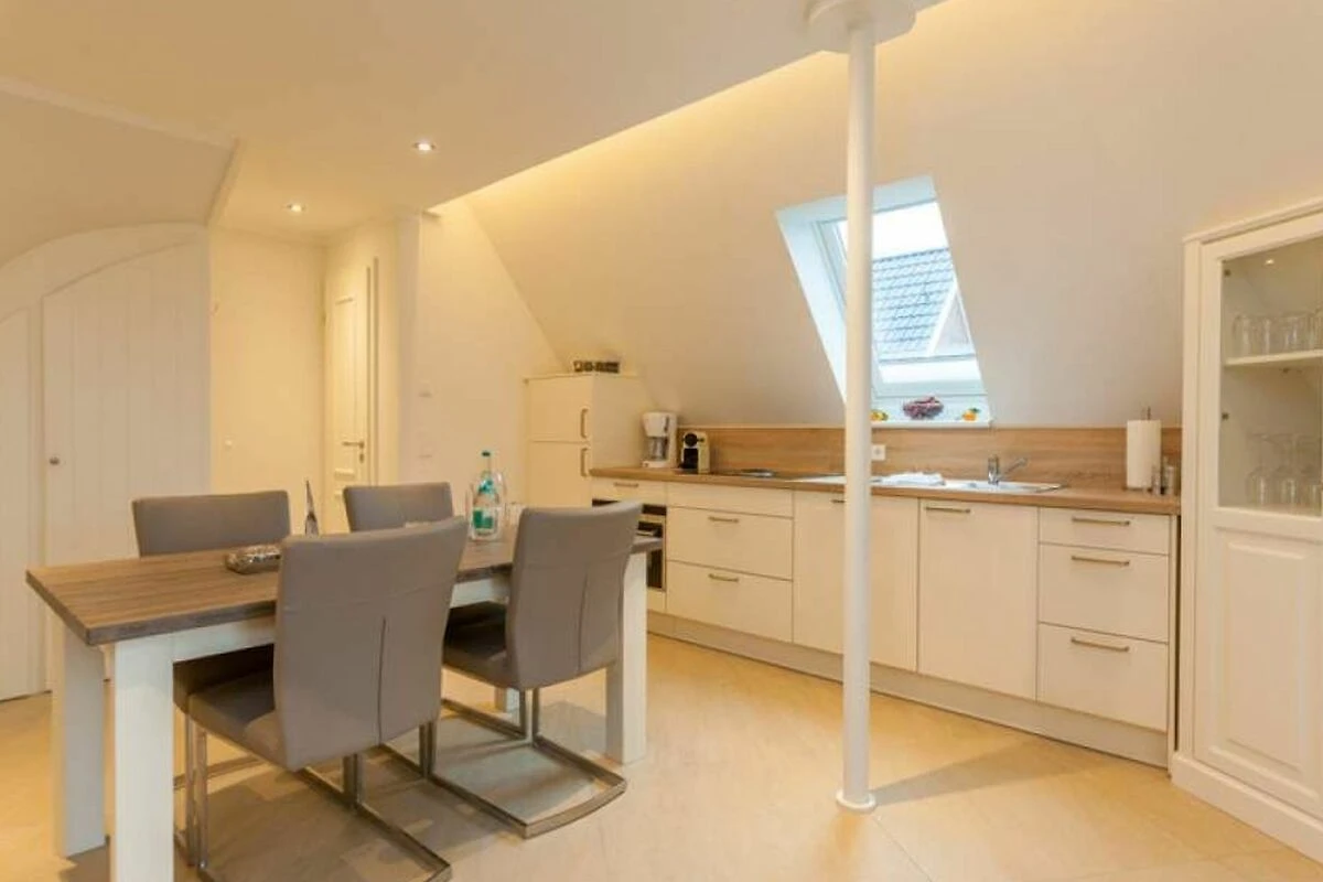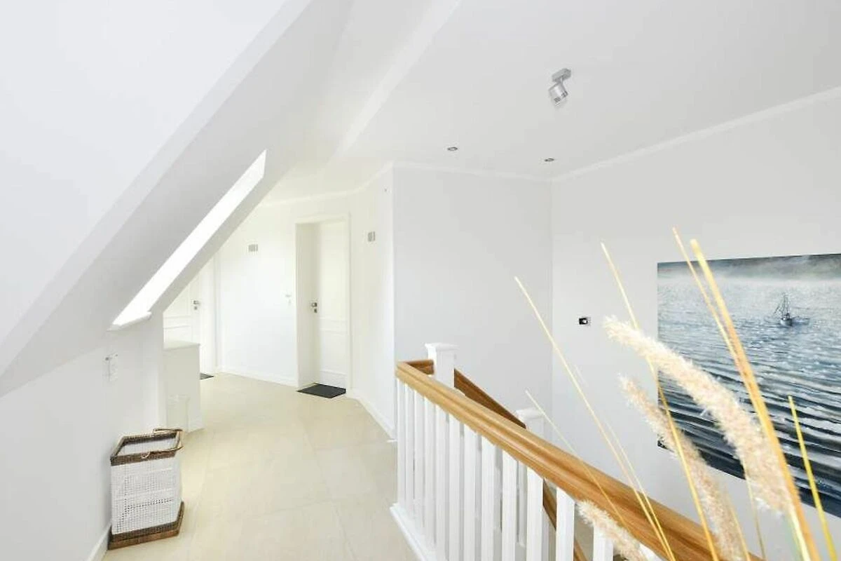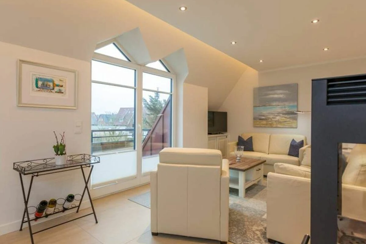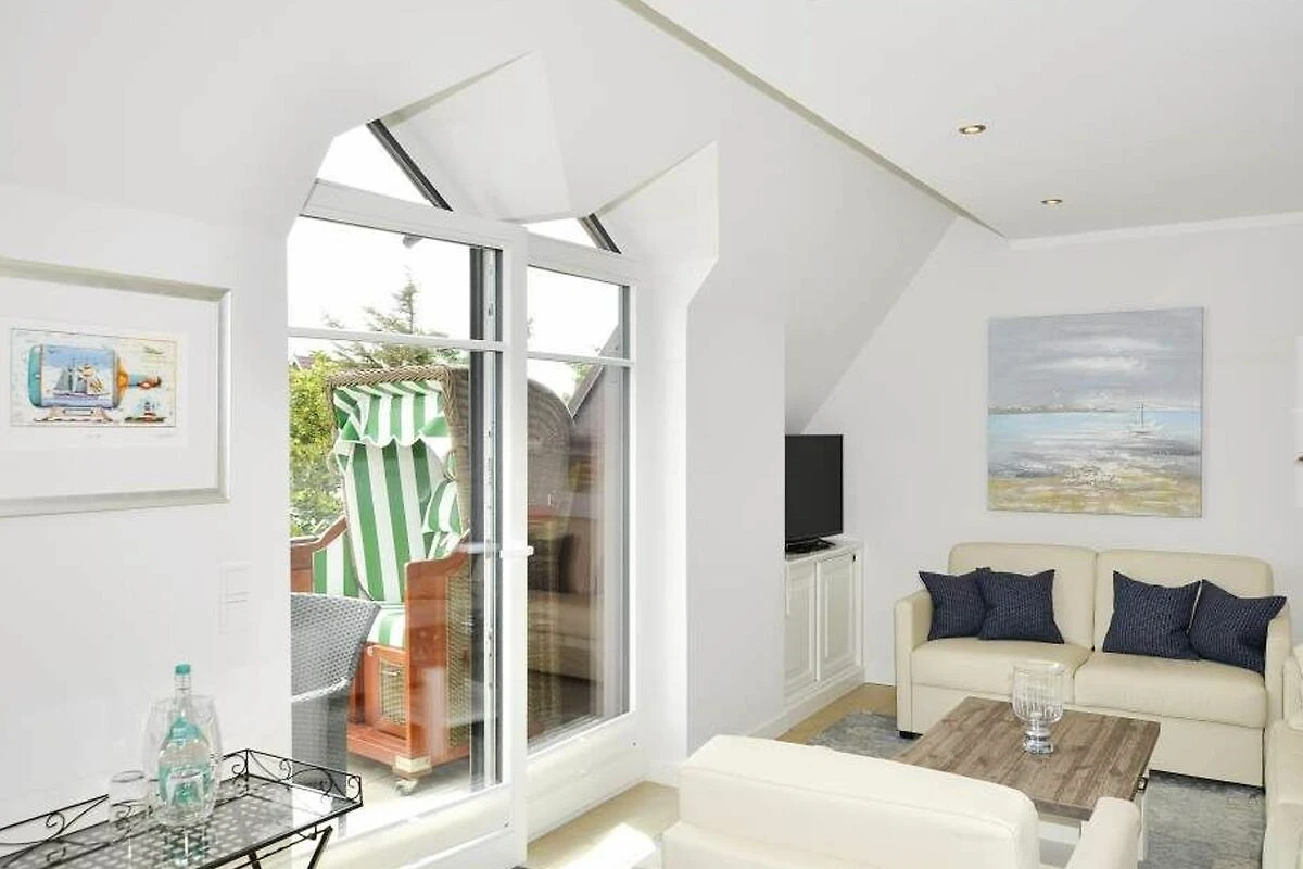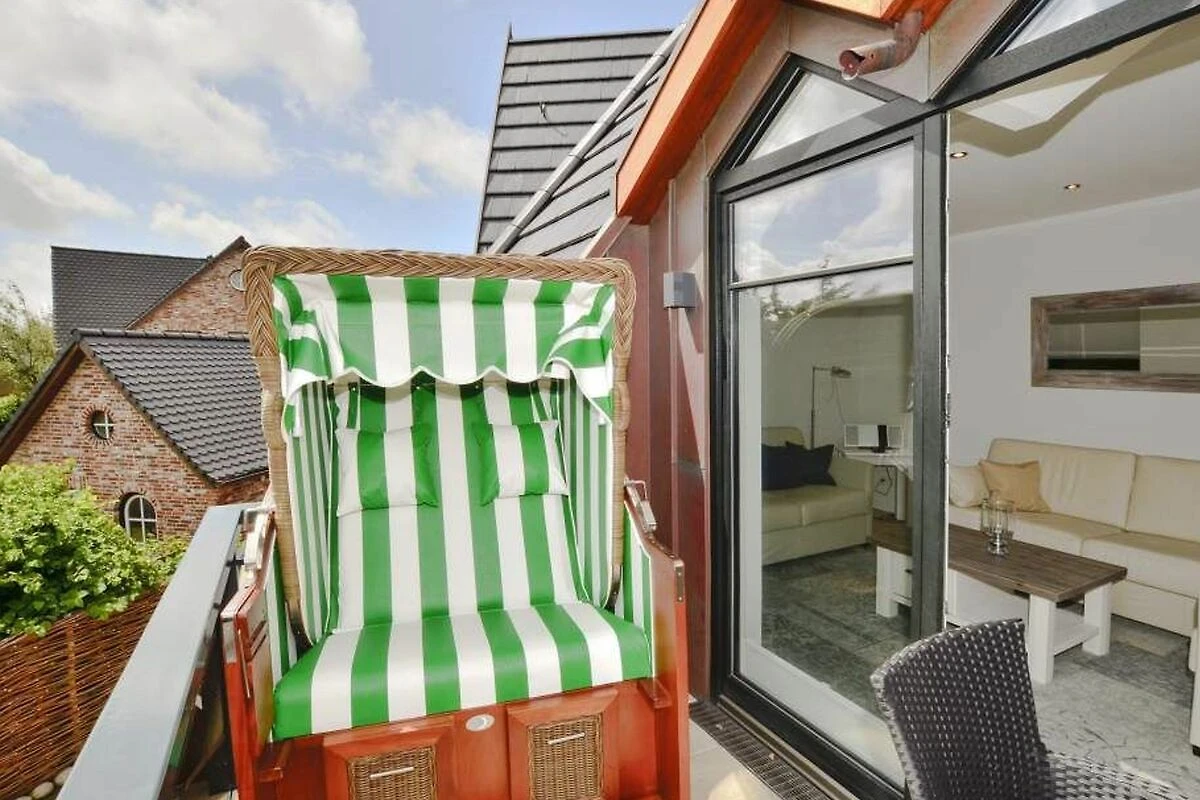 Luxuriöse 2-Zimmer-Maisonette-Nichtraucher-Ferienwohnung mit offener Empore, ca. 75 qm im 1. Obergeschoss, eine Südostloggia mit Strandkorb für 3 Personen