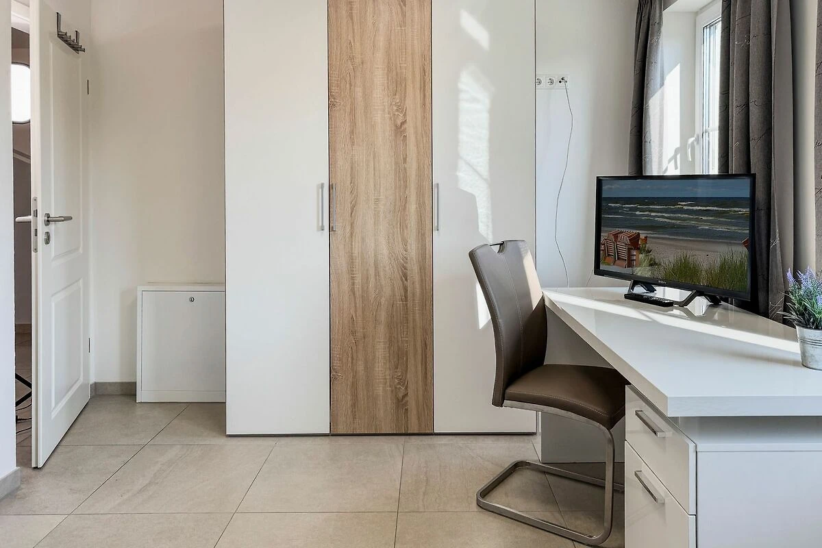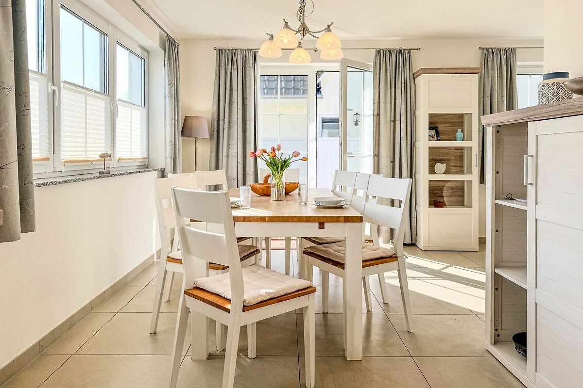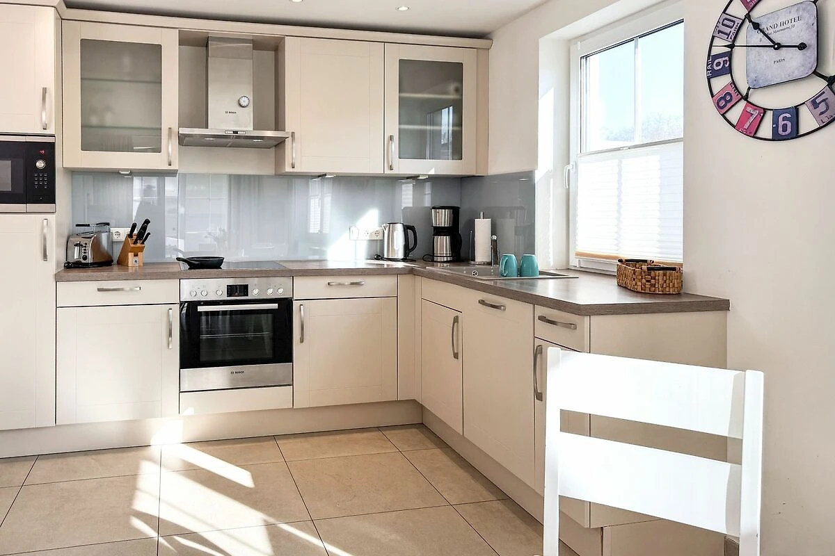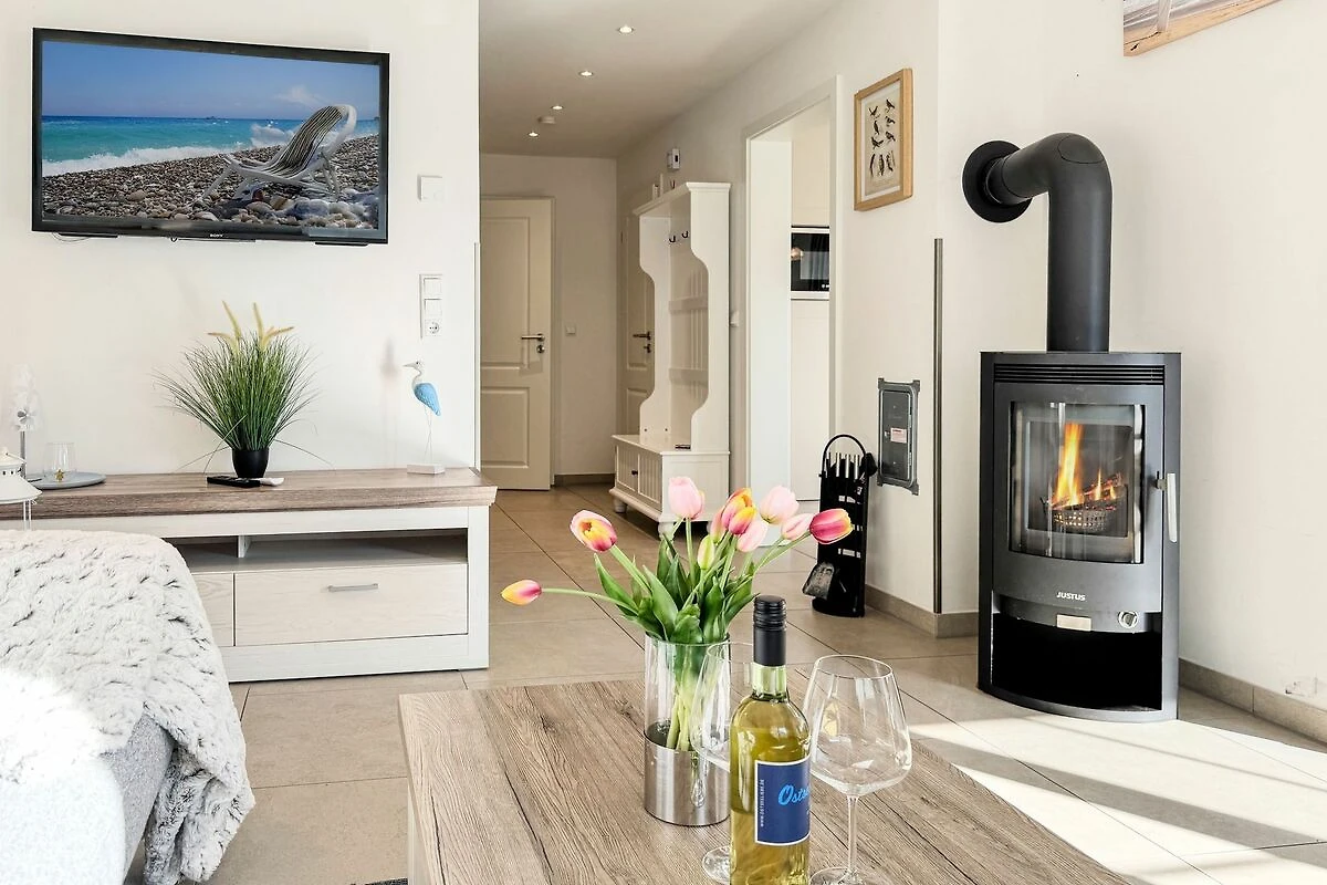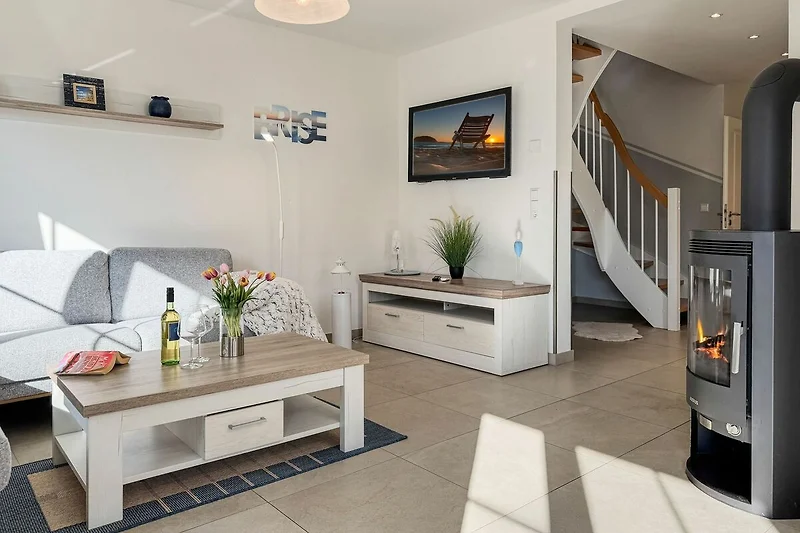 Das Ferienhaus Passatwind empfängt Sie mit einer warmen und einladenden Atmosphäre. Der grosszügige Wohnbereich mit Kamin ist das Herz des Hauses und lädt zu entspannten Abenden ein sei es bei einem guten Buch oder einem gemeinsamen Spieleabend. Die moderne Küche ist vollständig ausgestattet, sodass Sie mühelos köstliche Mahlzeiten für Ihre Liebsten zubereiten können.