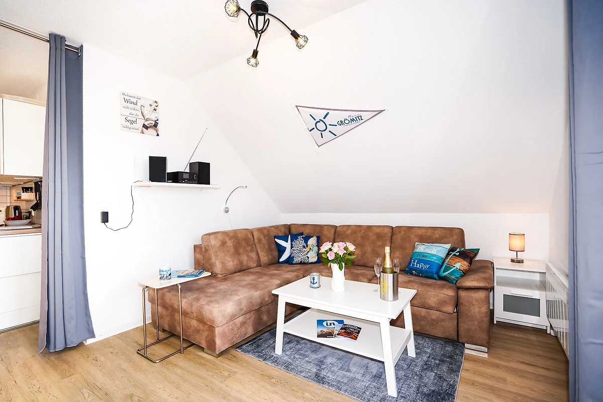 Diese gemütliche 2-Zimmer-Ferienwohnung verfügt über einen kombinierten offenen Wohn-, Ess- und Küchenbereich. Der innenliegende Balkon in Süd-West-Ausrichtung schliesst sich nahtlos an. Entspannen Sie hier nach einem aufregenden Tag am Strand. Einkaufsmöglichkeiten und das pulsierende Zentrum liegen nur wenige Schritte entfernt.