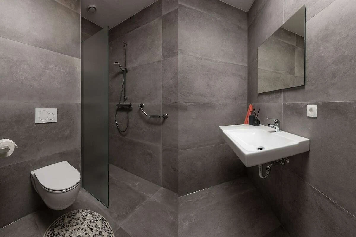 Die Gruppenunterkunft verfügt über insgesamt 10 Schlafzimmer. Vier davon befinden sich im Erdgeschoss und verfügen alle über ein eigenes Badezimmer. Im ersten Stock befinden sich sechs weitere Schlafzimmer, von denen drei ebenfalls über ein eigenes Badezimmer verfügen. Für die anderen Schlafzimmer gibt es ein Gemeinschaftsbad.