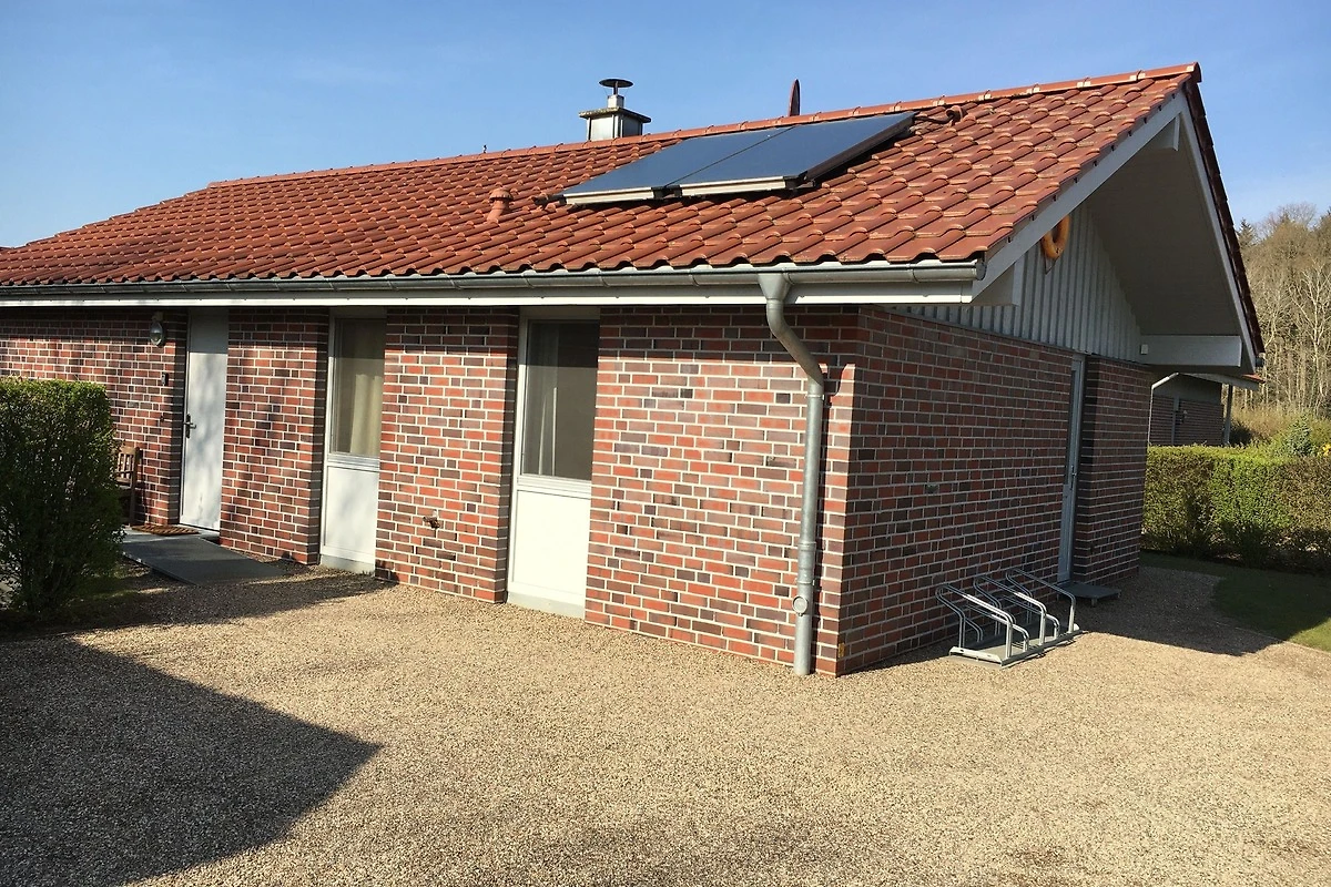 Das Ferienhaus befindet sich in einer ruhigen Lage und ist in der Nähe von einer grosszügigen Wiese und vereinzelten Bäumen umgeben. Das grosse und schön eingewachsene Grundstück ist mit Vogelschutzhecken abgegrenzt und schafft so einen natürlichen und privaten Schutzraum. Die grosse Terrasse und der Garten sorgen dafür, dass ganz viel Urlaubszeit im Freien verbracht werden kann. Sowohl Gartenmöbel, Grill und Gartenliegen als auch ein Sonnenschirm stehen hier zur Verfügung und machen die Stunden an der frischen Luft besonders komfortabel.