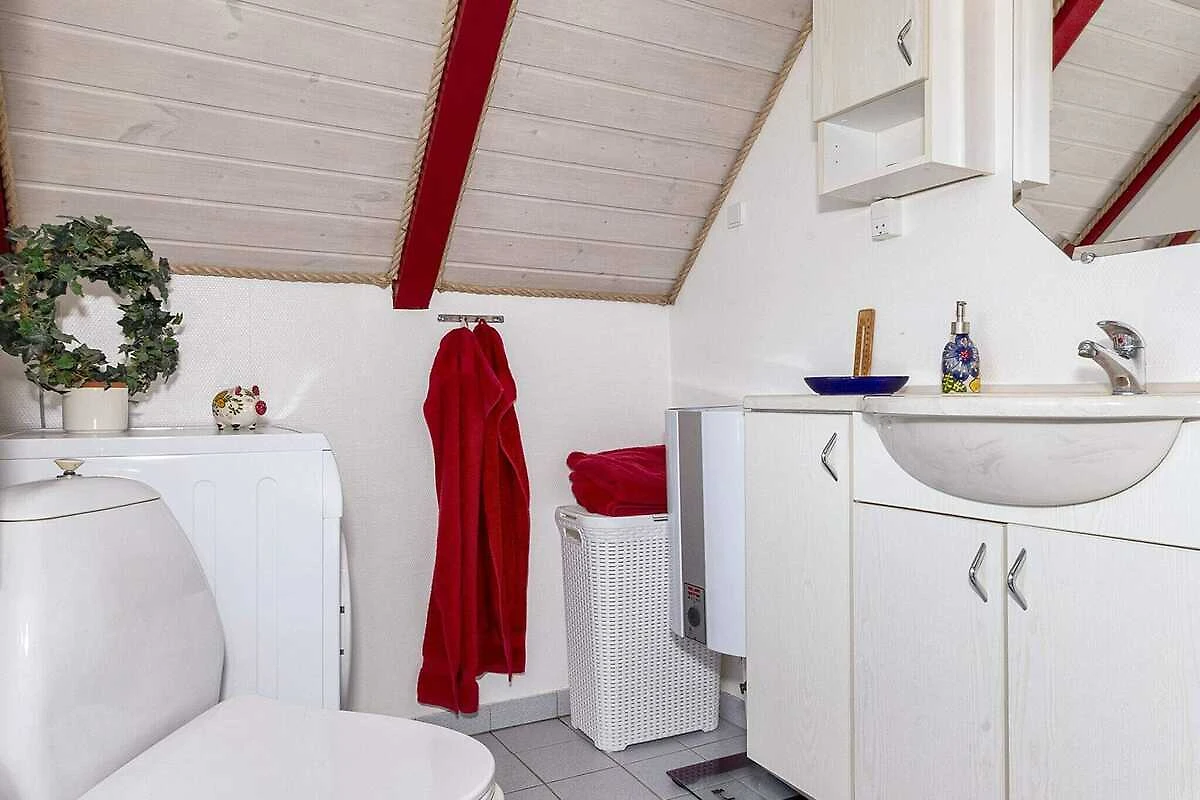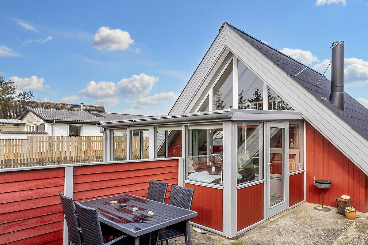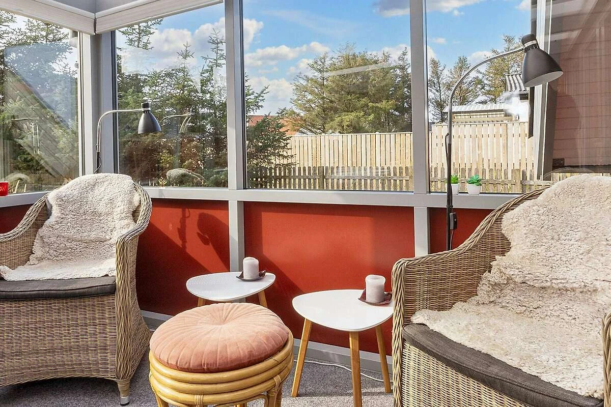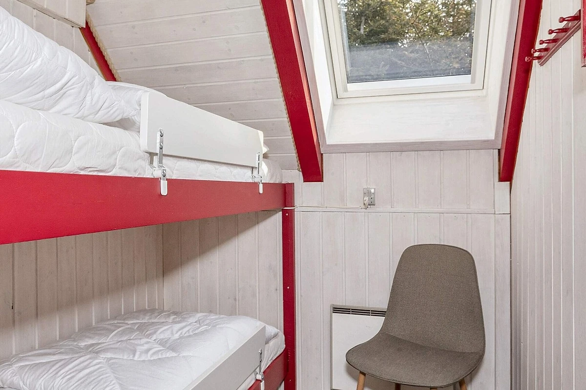 Küche(Herd(Induktion), Kaffeemaschine, Mikrowelle, Spülmaschine, Kühl-/Gefrierkombination, Hochstuhl), Wohn-/Schlafzimmer(TV(Deutsch Fernsehsender, dänische Fernsehsender, norwegische Fernsehsender, schwedische Fernsehsender), DVD-Spieler, CD-Spieler, Chromecast), Schlafzimmer(Doppelbett), Schlafzimmer(2x Etagenbett), Schlafzimmer(2x Einzelbett), Badezimmer(Waschbecken, Dusche, Toilette, Waschmaschine), Heizung(elektrisch), Terrasse, Gartenmöbel, Liegen, Luft-Luft-Wärmepumpe