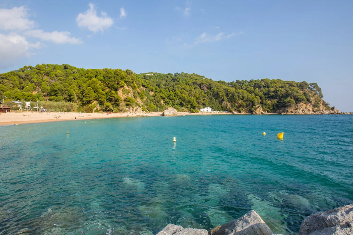 Entdecken Sie die malerische Badebucht Cala Canyelles, idyllisch gelegen in der Nähe des beliebten Küstenortes Lloret de Mar.. Umrahmt von sanften Pinienhügeln bietet die Bucht kristallklares Wasser und einen feinen Sandstrand – perfekt für entspannte Tage unter der Sonne.