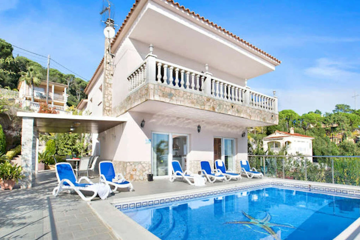 Luxuriöse Ferienvilla mit privatem Pool, eingebettet zwischen den beliebten Ferienorten Lloret de Mar und Tossa de Mar, oberhalb der malerischen Badebucht Cala Canyelles an der Costa Brava. Erleben Sie den Luxus in dieser exklusiven Ferienvilla, die in erster Linie zum Meer liegt und einen atemberaubenden Panoramablick auf das Mittelmeer bietet. Über eine private Treppe gelangen Sie direkt zum Meer.