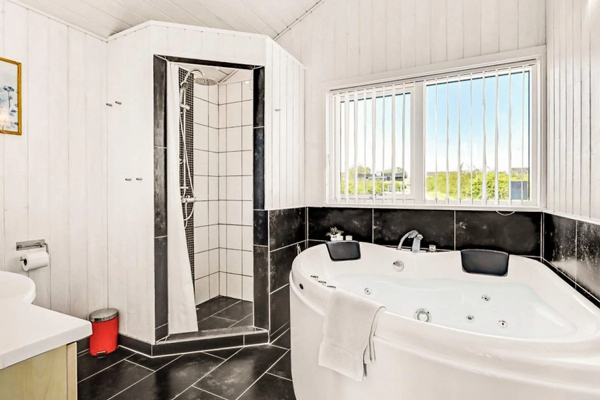 Dieses Ferienhaus mit Whirlpool befindet sich in Bukkemose. Es ist mit vielen modernen Annehmlichkeiten und Holzböden im Wohnzimmer ausgestattet. Drei schöne Schlafzimmer mit Teppichboden. Schönes Badezimmer mit Whirlpool für zwei Personen. Auf der großen Süd-/Ost-Terrasse ist es möglich, ganz unabhängig vom Wetter, viel Zeit zu verbringen. Das Ferienhaus ist auch für Angler geeignet, da es in der Umgebung viele gute Angelmöglichkeiten sowie einen kostenlosen Liegeplatz am Wasser gibt. Das Haus liegt außerdem direkt an einem See, der eingezäunt ist. Es gibt einen Spielplatz ca. 700 m vom Haus entfernt. Wenn Sie Lust auf eine Partie Golf haben, ist es naheliegend, den örtlichen Golfplatz zu besuchen, der etwa 1,5 km vom Haus entfernt liegt. Der Strand in Bukkemose bietet einen schönen Strand mit vielen Möglichkeiten zum Tauchen, Windsurfen, Angeln, Bernsteinsammeln und angenehmen Badeausflügen. Keine Vermietung an Jugendgruppen erwünscht!Kurz vor Ihrem Ankunftsdatum kann eine rückzahlbare Kaution erhoben werden. Die Kaution stellt sicher, dass Ihr Aufenthalt reibungslos verläuft, und deckt eventuelle Zusatzleistungen oder Verbrauchskosten ab.Diese Kaution deckt den Verbrauch von Nebenkosten während Ihres Aufenthalts sowie zusätzliche in Anspruch genommene Leistungen ab.Der endgültige Betrag wird anhand der tatsächlichen Zählerstände und Nutzung zusätzlicher Services angepasst. Ein etwaiger Restbetrag wird Ihnen innerhalb von 21 Tagen nach dem Check-out zurückerstattet.Die Kaution dient lediglich als Vorauszahlung für Leistungen, die Sie ohnehin bezahlen würden, und ermöglicht einen reibungslosen Ablauf Ihres Aufenthalts und Check-outs.