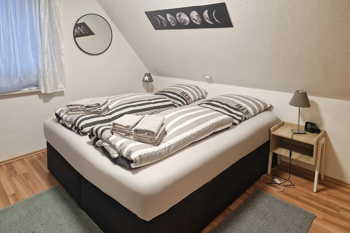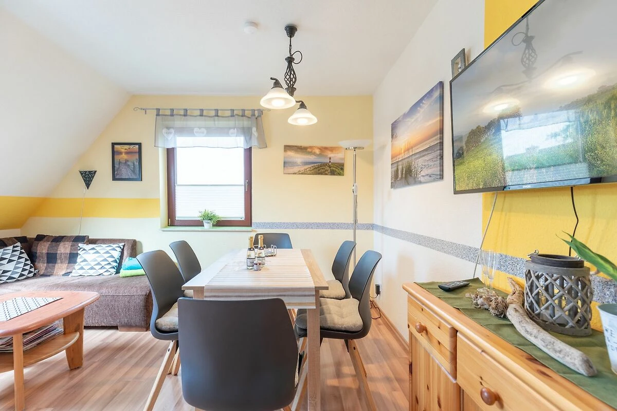 Die Ferienwohnung Gode Sünn befindet sich im 1. Obergeschoss und bietet mit seinen 70 qm Raum für bis zu 5 Personen.