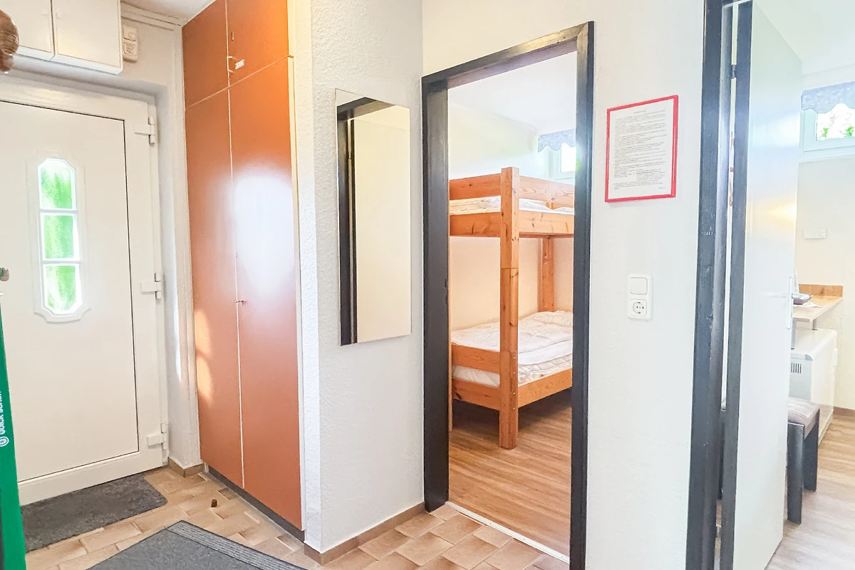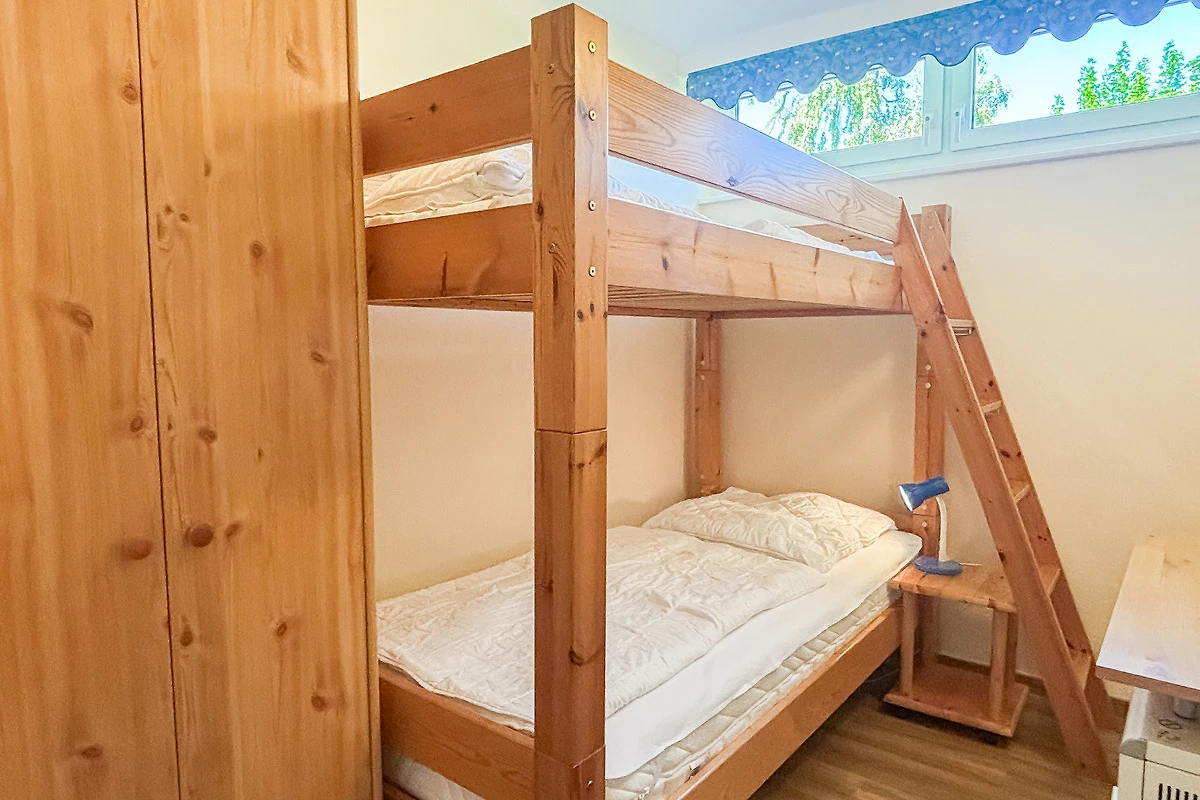 Das 2. Schlafzimmer verfügt über ein Etagenbett und einen Kleiderschrank.