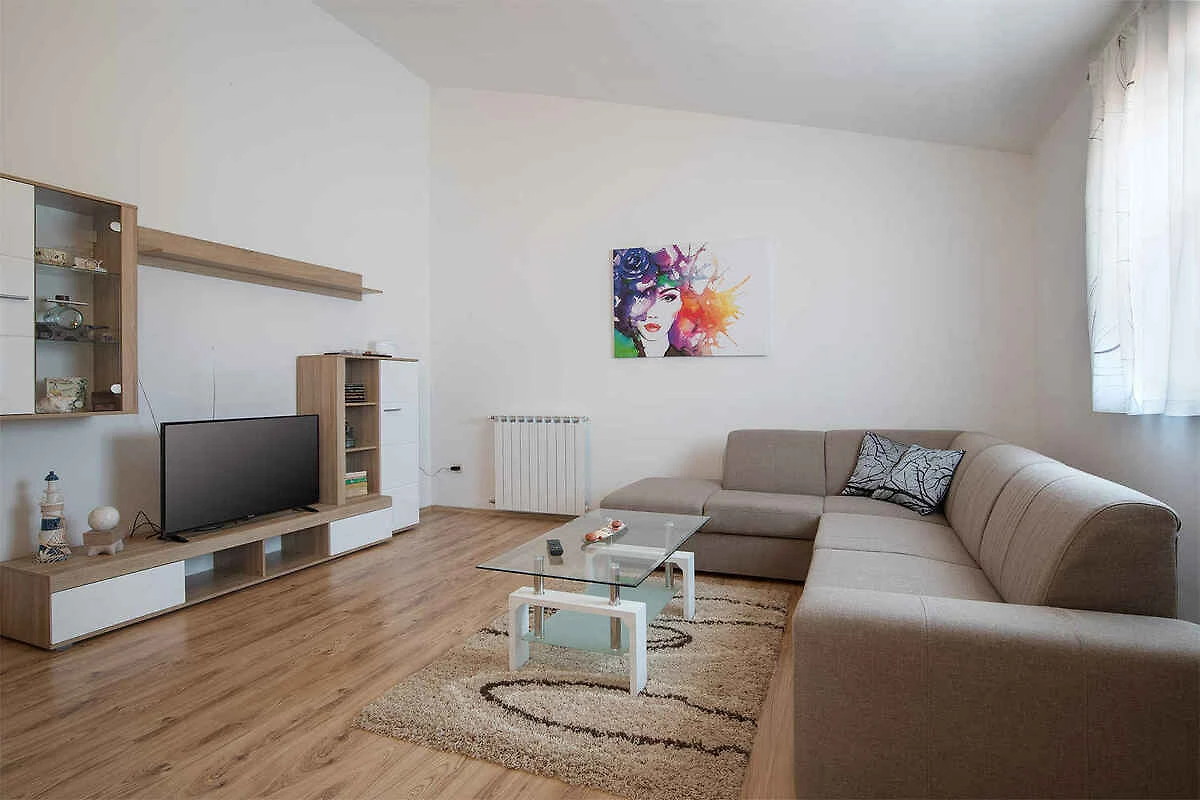 Barban. Die Ferienwohnung befindet sich auf einem 92 qm grossen, geschlossenen Gartengrundstück mit Blumen und Bäumen, von einem Zaun begrenzt. Der Vermieter wohnt ständig im Haus. Die Zufahrt erfolgt direkt von der Hauptstrasse (asphaltiert). Parkplatz auf dem Grundstück.