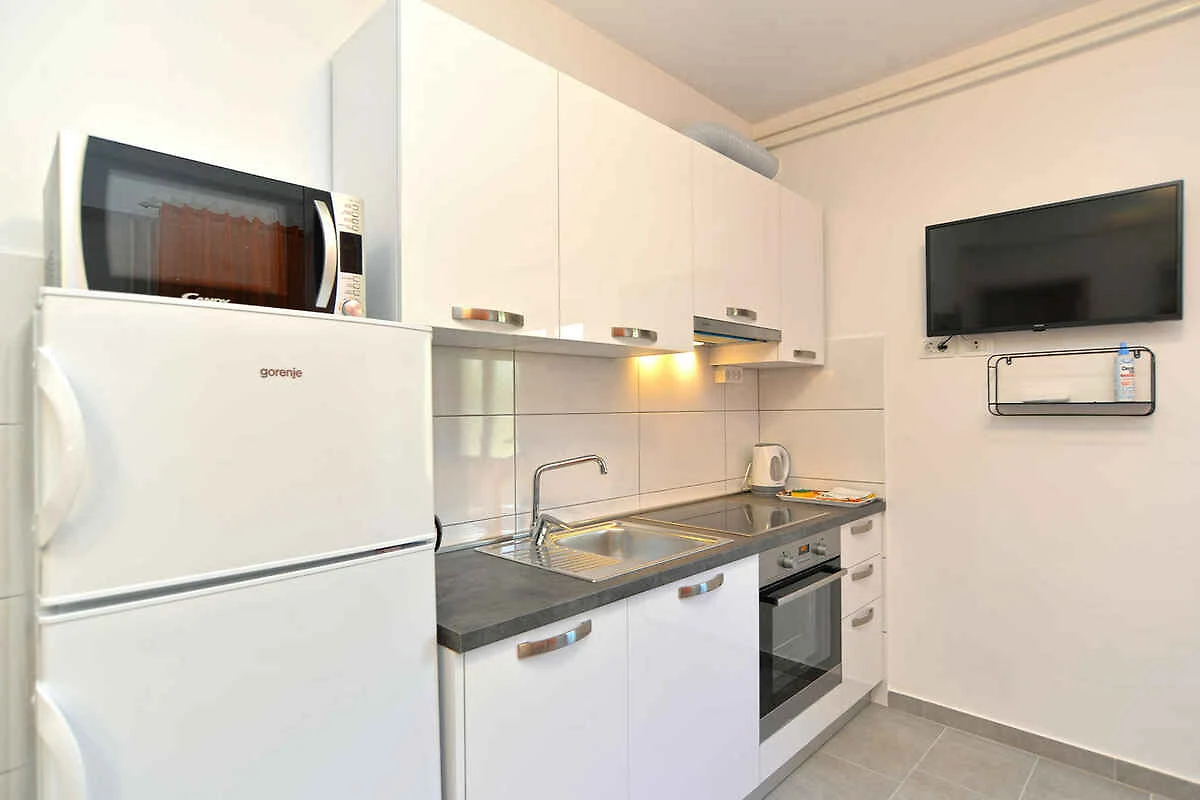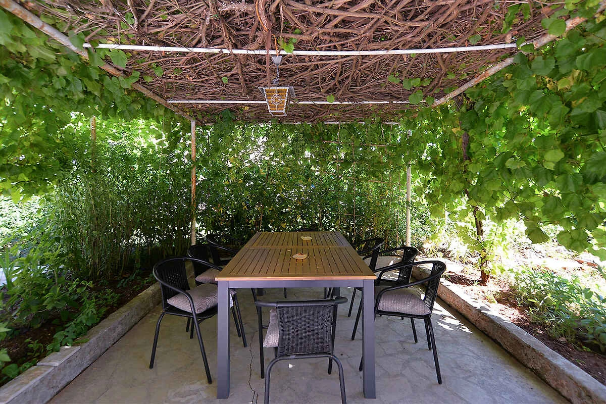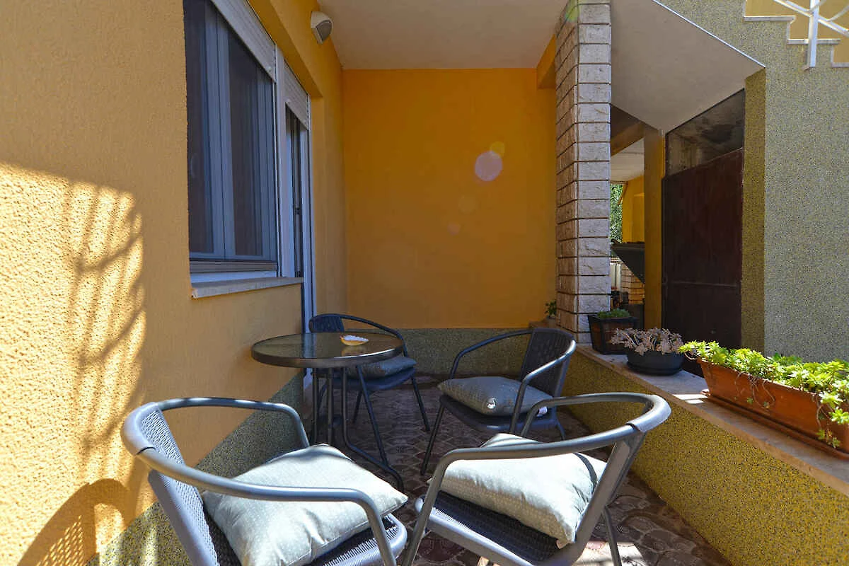 Fažana. Die Ferienwohnung befindet sich auf einem 35 qm grossen, geschlossenen Gartengrundstück mit Blumen und Bäumen, von einem Zaun begrenzt. Der Vermieter wohnt ständig im Haus. Die Zufahrt erfolgt über eine Nebenstrasse (asphaltiert). Parkplatz auf dem Grundstück.