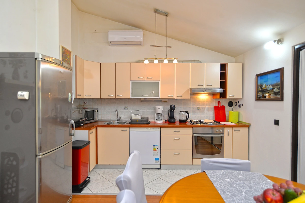 Banjole. Die Ferienwohnung befindet sich auf einem 61 qm grossen, geschlossenen Gartengrundstück mit Blumen und Bäumen, von einem Zaun begrenzt. Der Vermieter wohnt ständig im Haus. Die Zufahrt erfolgt über eine Nebenstrasse (asphaltiert). Parkplatz auf dem Grundstück.