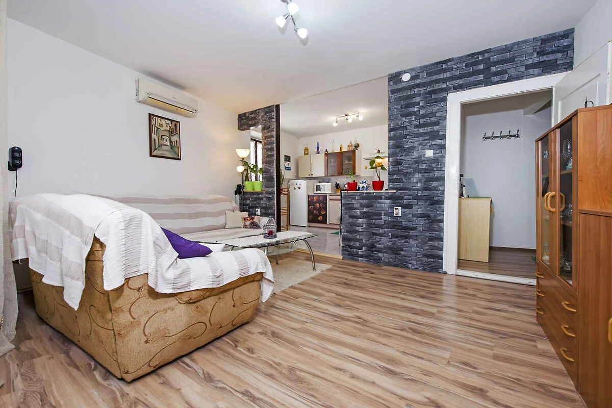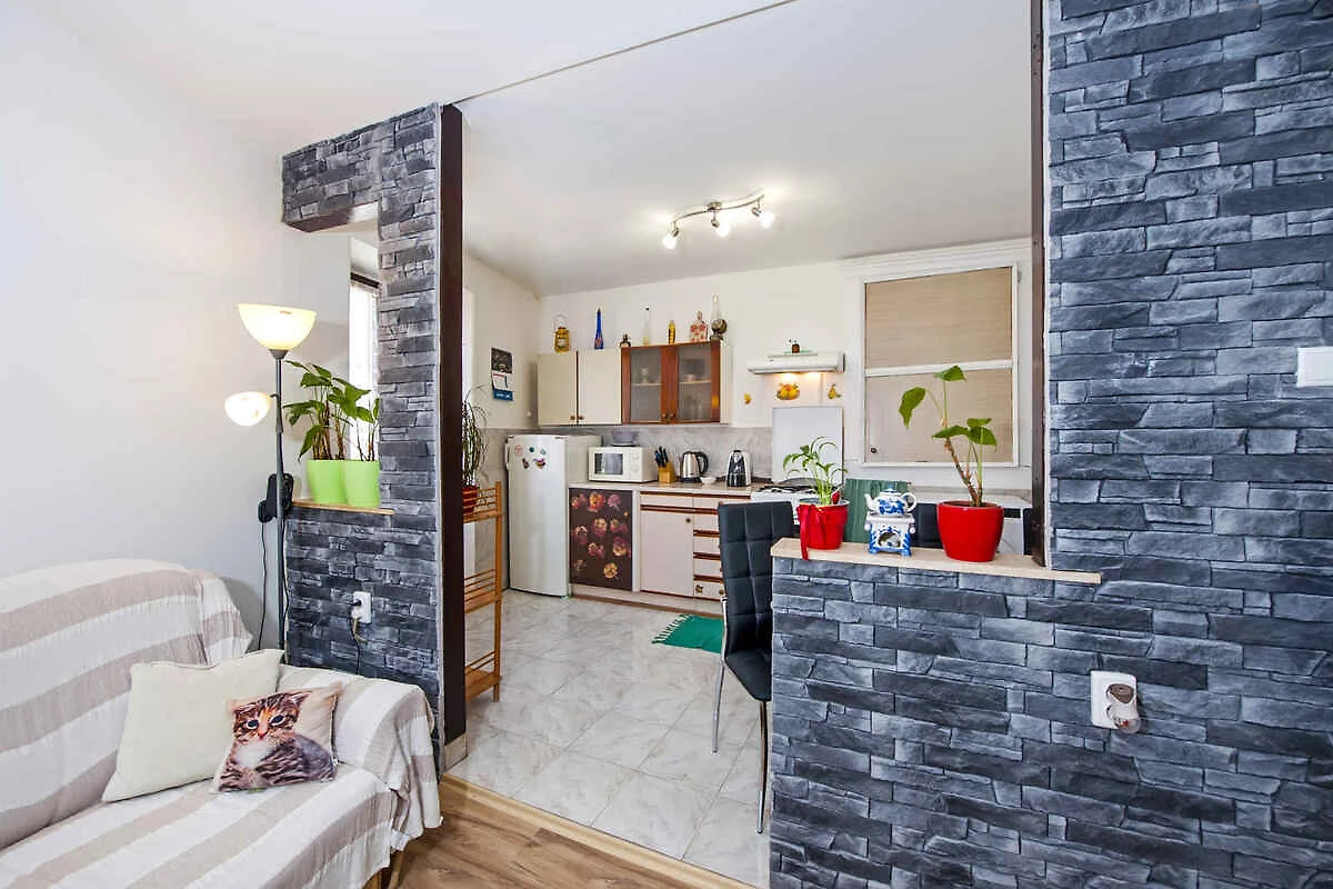 Rovinj. Die Ferienwohnung befindet sich auf einem 60 qm grossen Grundstück. Der Vermieter wohnt ständig im Haus. Die Zufahrt erfolgt über eine Nebenstrasse (asphaltiert). Parkplatz auf einem Parkplatz im Ort (Entfernung 350 m).