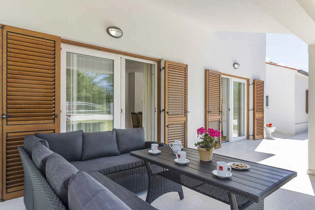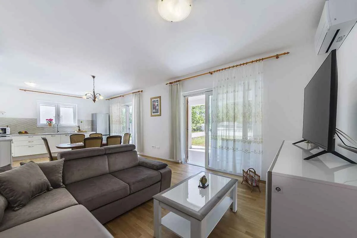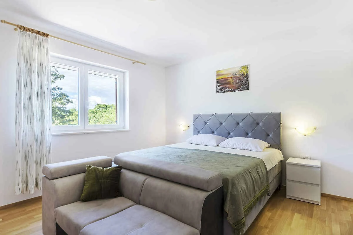 Labin. Die Villa befindet sich auf einem 254 qm grossen, geschlossenen Gartengrundstück mit Wiese, Blumen, Sträuchern und Bäumen, von einem Zaun begrenzt. Der Vermieter wohnt nicht im Haus oder auf dem Grundstück. Die Zufahrt erfolgt über eine Nebenstrasse. Parkplatz auf dem Grundstück.