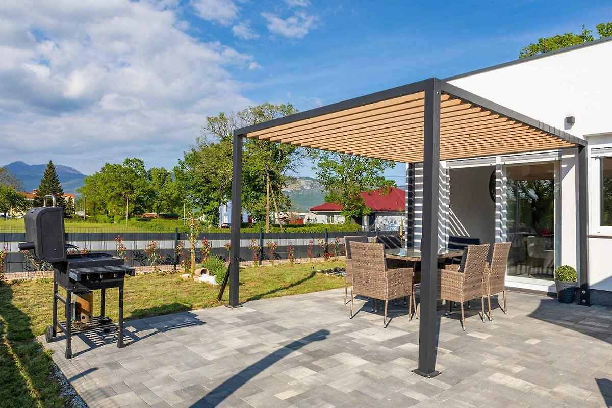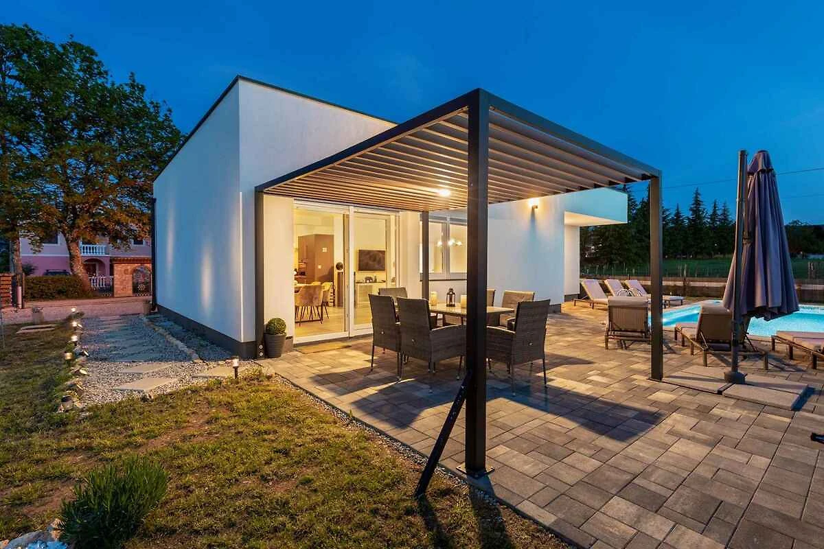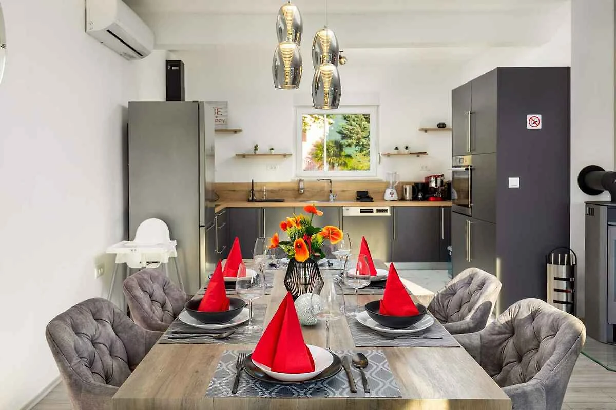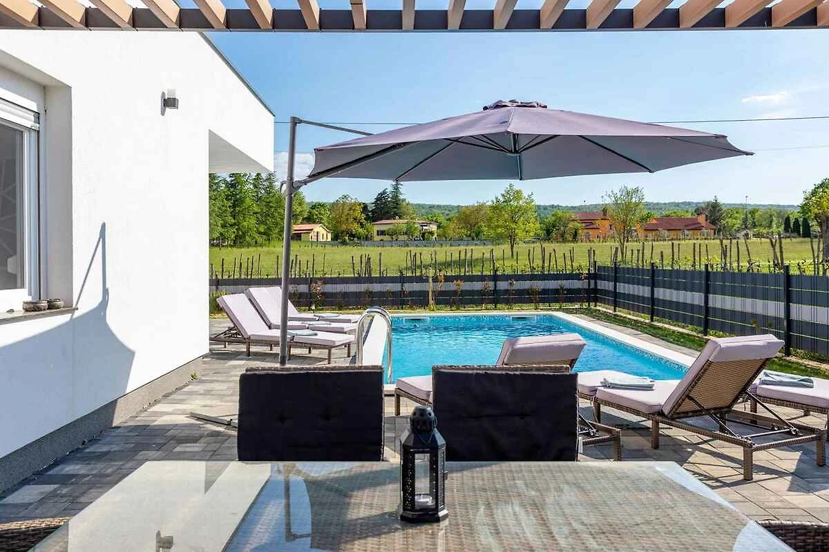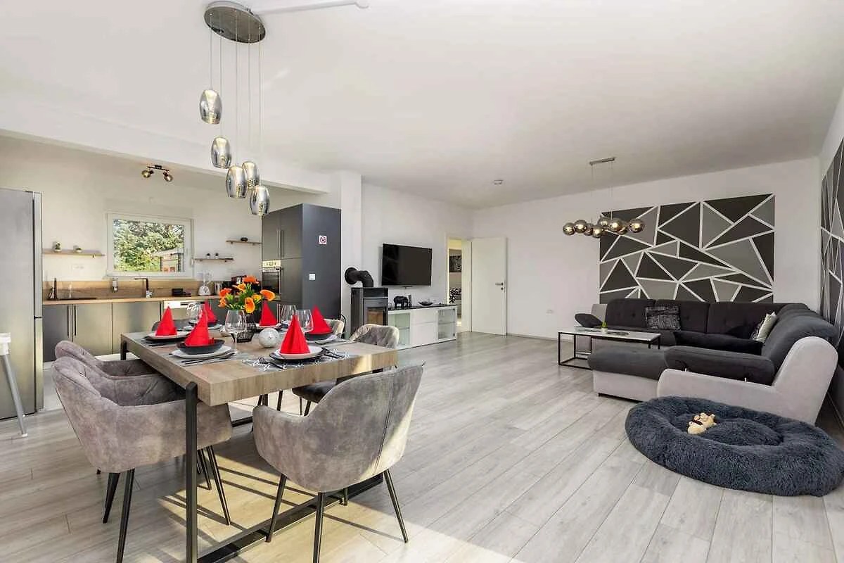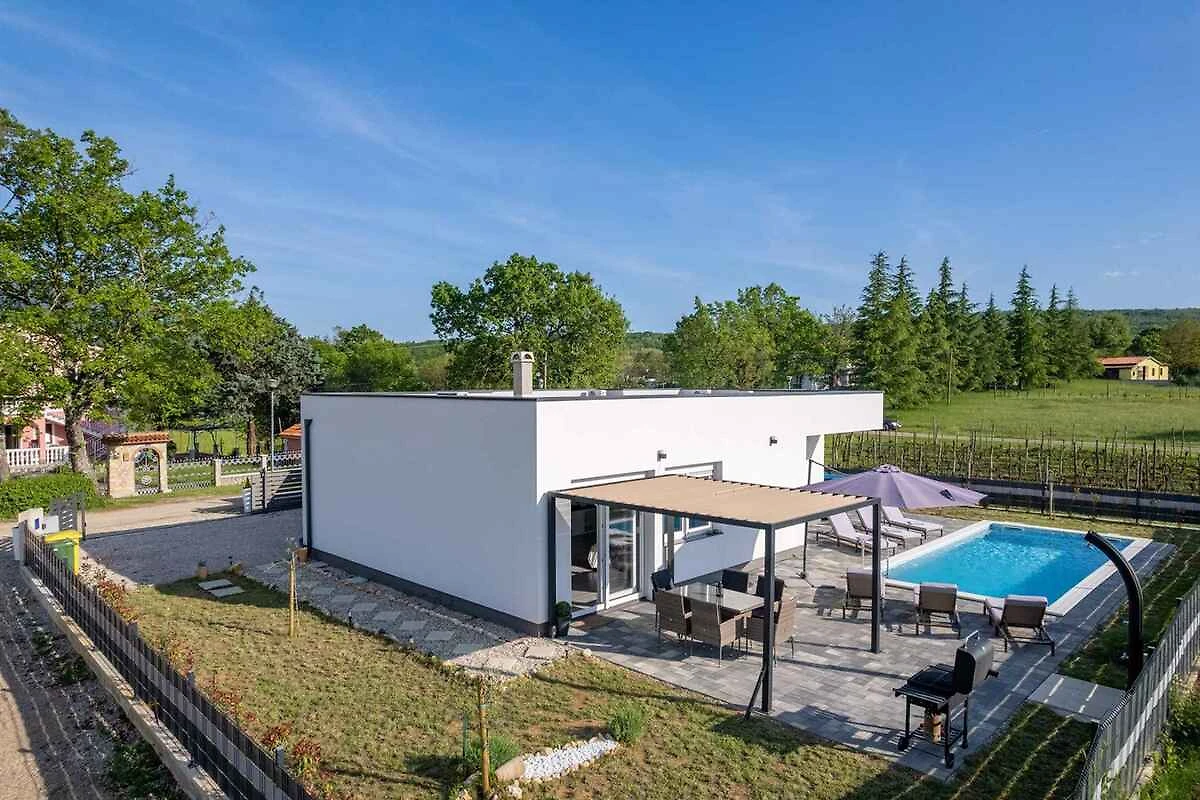 Kršan. Die Villa befindet sich auf einem geschlossenen Gartengrundstück mit Wiese, von einem Zaun begrenzt. Der Vermieter wohnt nicht im Haus oder auf dem Grundstück. Das Ferienhaus befindet sich im ruhigen Dorf Blaškovići, direkt neben der malerischen Stadt Kršan. Dieses moderne einstöckige Haus wurde kürzlich erbaut und ist ein idealer Ort, um dem Trubel der Stadt zu entfliehen und in einer natürlichen Umgebung zu entspannen.