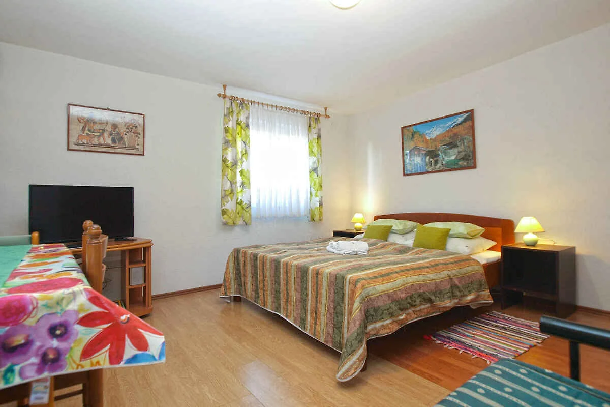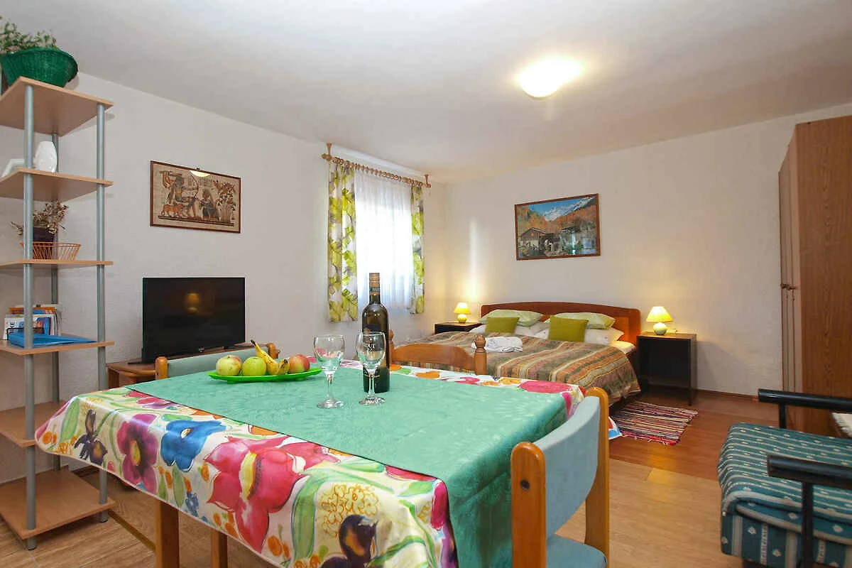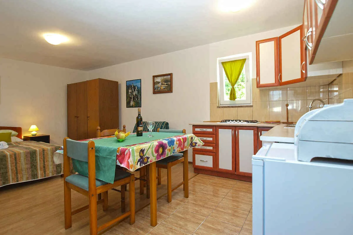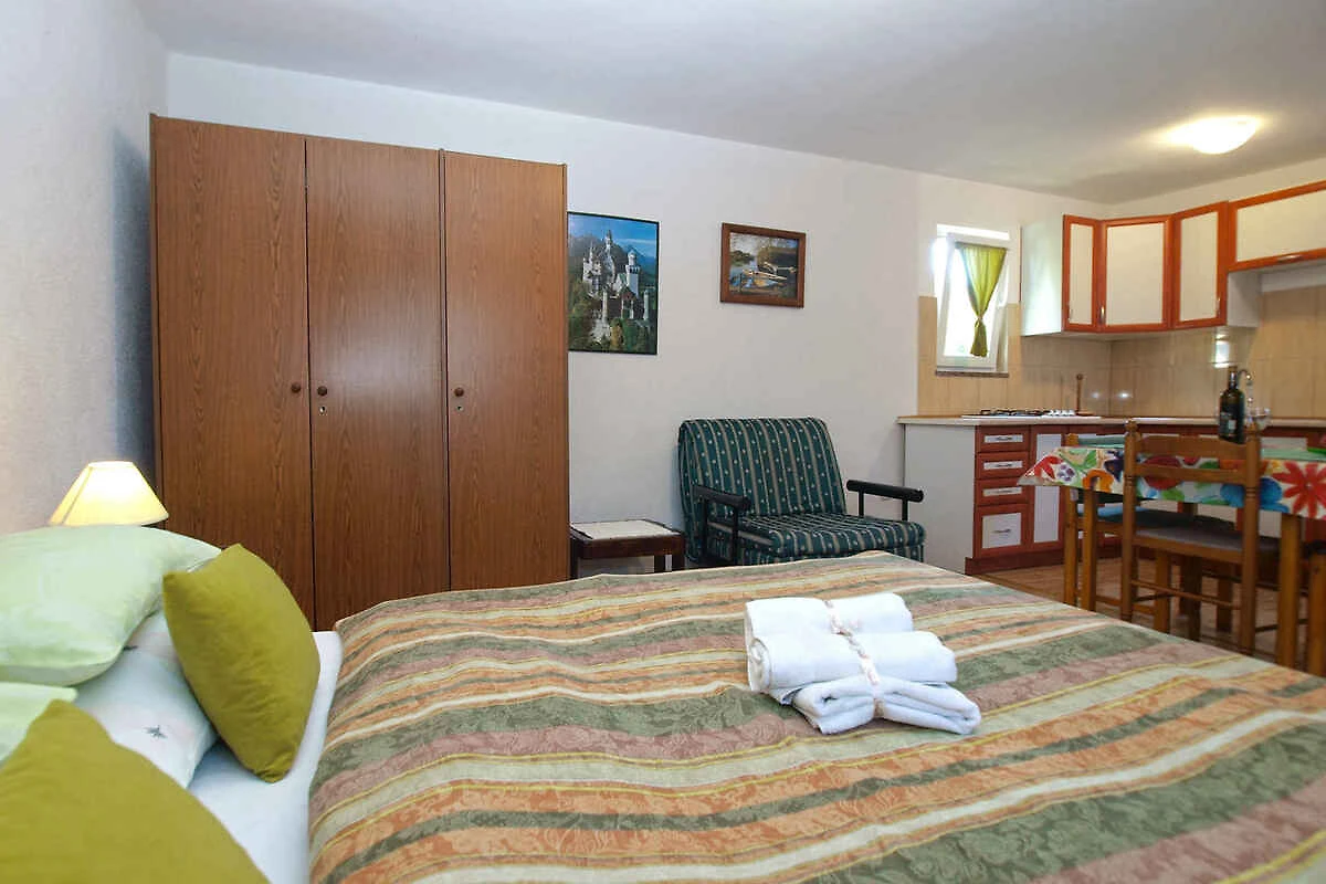 Premantura. Die Ferienwohnung befindet sich auf einem 45 qm grossen, geschlossenen Gartengrundstück mit Blumen und Bäumen, von einem Zaun begrenzt. Der Vermieter wohnt ständig im Haus. Die Zufahrt erfolgt direkt von der Hauptstrasse (asphaltiert). Parkplatz auf dem Grundstück.