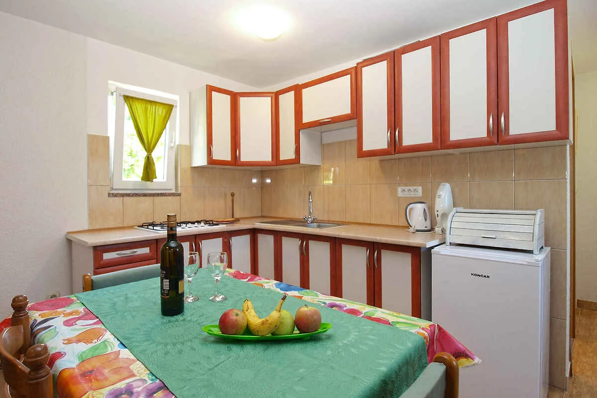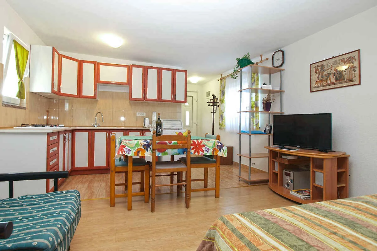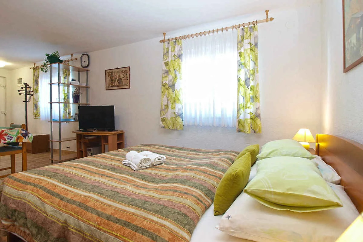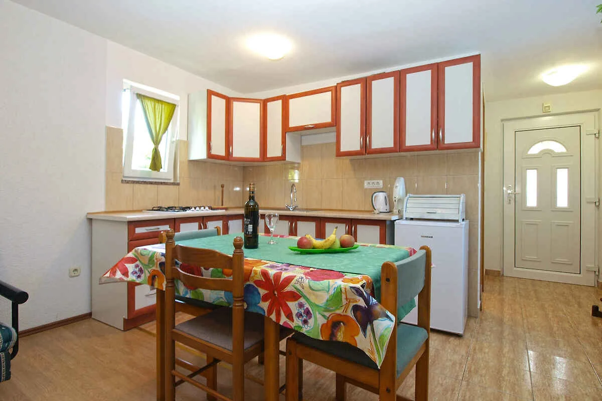 Premantura. Die Ferienwohnung befindet sich auf einem 45 qm grossen, geschlossenen Gartengrundstück mit Blumen und Bäumen, von einem Zaun begrenzt. Der Vermieter wohnt ständig im Haus. Die Zufahrt erfolgt direkt von der Hauptstrasse (asphaltiert). Parkplatz auf dem Grundstück.