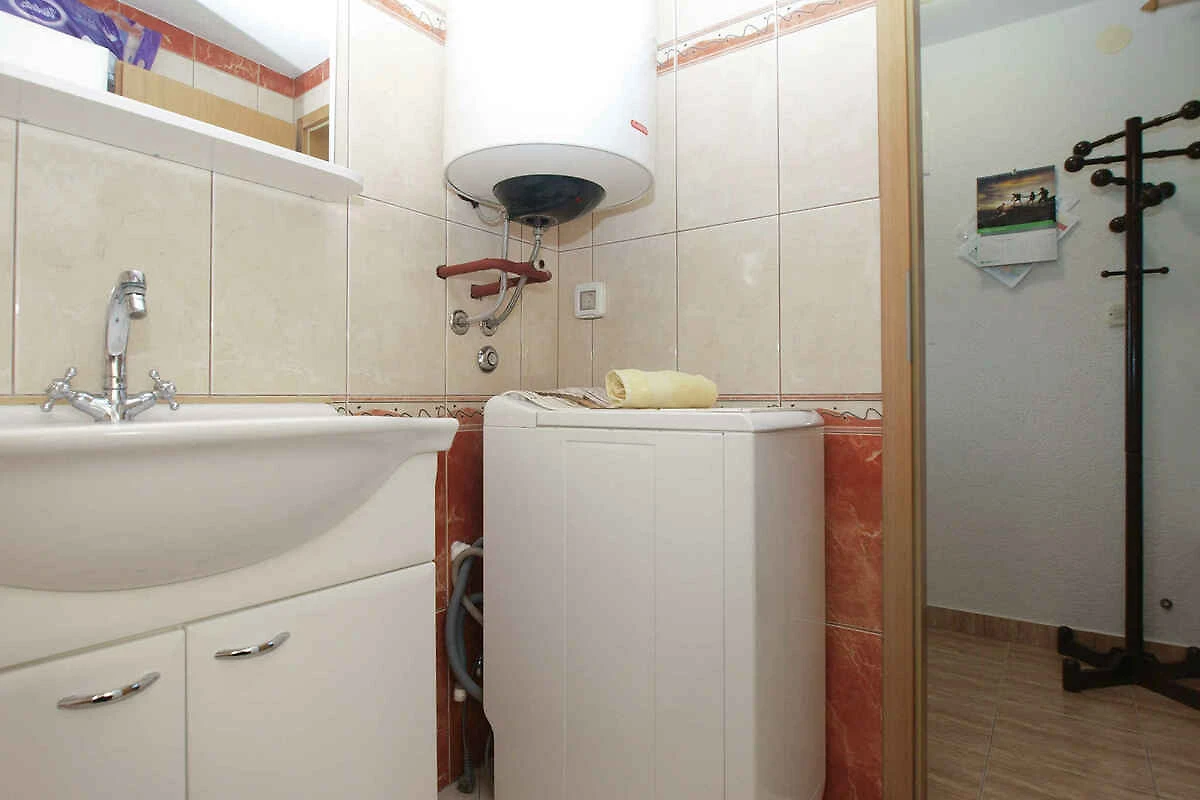 Einkauf 350 m, Restaurant 100 m, Ortszentrum 300 m. Flughafen in Pula 17,8 km. Im Sommer: Adria 300 m in Premantura (Strand 300 m in Premantura mit Kies, Steinen und Felsen). Hundestrand in Banjole 7,3 km.