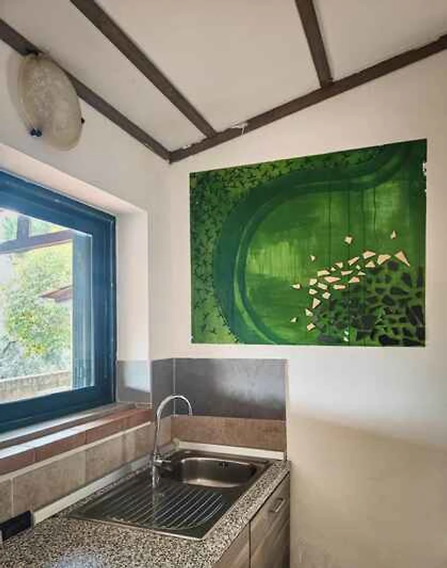 Guardistallo. Die Ferienwohnung befindet sich in einer Ferienanlage, auf einem offenen Gartengrundstück mit Wiese, Blumen, Sträuchern und Bäumen. Die Zufahrt erfolgt direkt von der Hauptstrasse (asphaltiert). Parkplatz (für 1 Pkw) auf dem Grundstück.