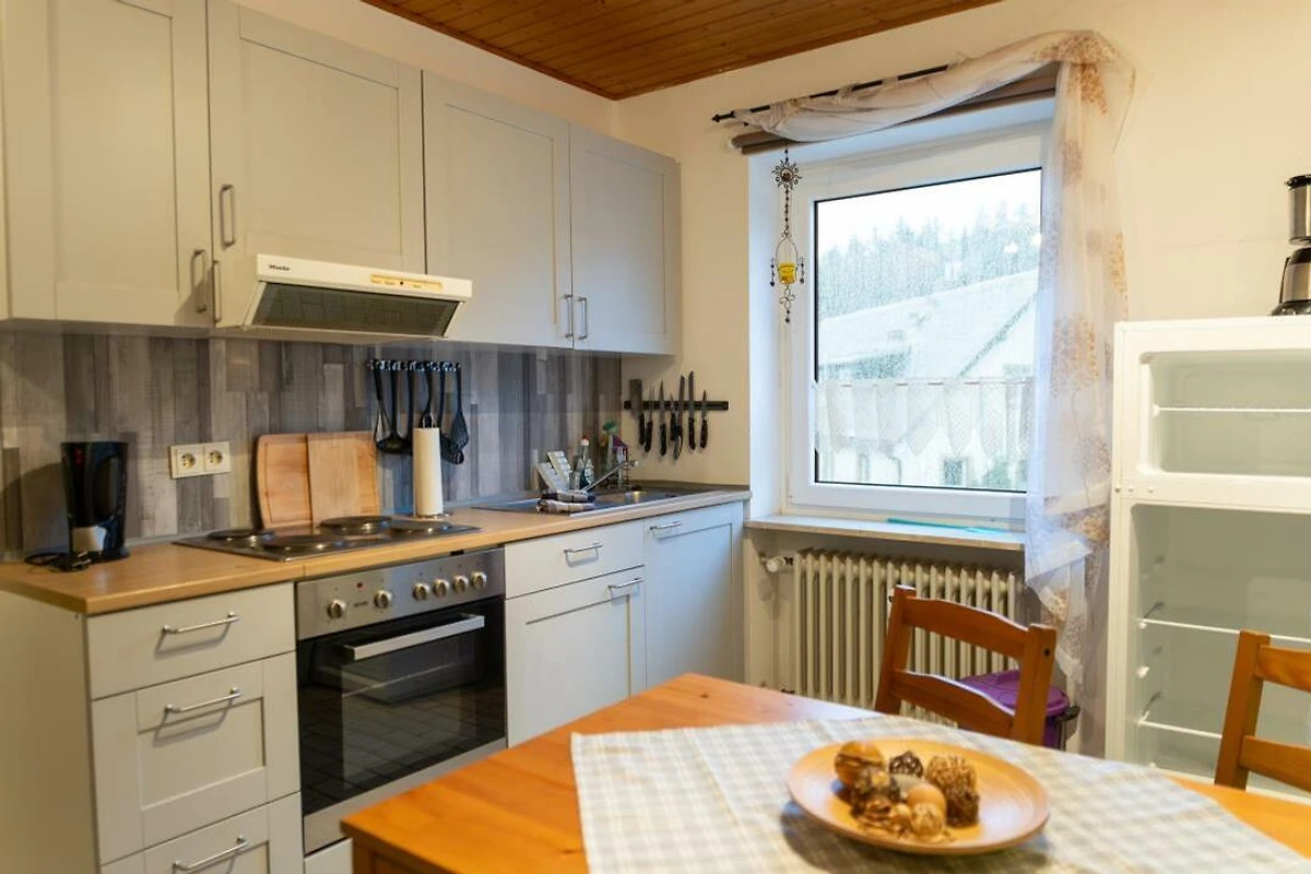 Die Küche bietet unter anderem einen Kühlschrank mit Gefrierfach, eine Kaffeemaschine, einen Toaster und einen Wasserkocher. Die grosse Tischgarnitur lädt zum Essen und Spielen ein.