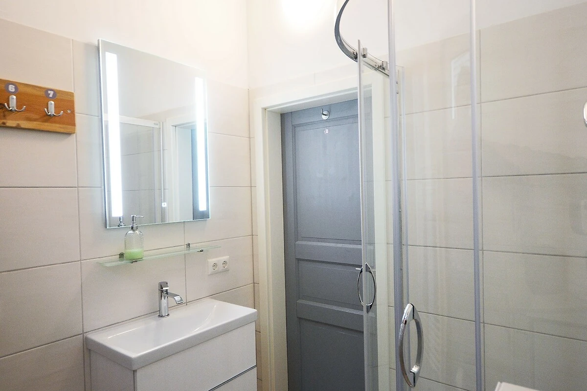 Die FeWo Drei befindet sich in einem alten, ehemaligen Gutsherrenhaus und lässt an vielen Ecken noch den Charme des 19. Jahrhunderts verspüren. Grosse, neue Fenster und viel Licht, eine geräumige Küche, in der sich ein Fernseher befindet sowie ein Geschirrspüler runden den Komfort ab. Ein Spind mit 8 verschliessbaren Fächern hilft Ordnung zu halten. Nach Absprache kann Wäsche in einer Gemeinschaftswaschmaschine gewaschen werden. Hunde sind herzlich willkommen.