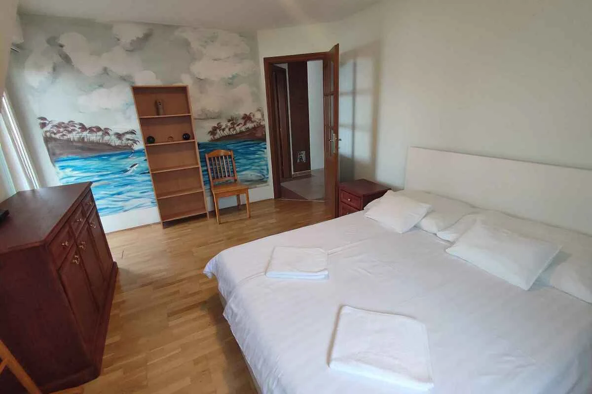 1. Etage: 4 Schlafzimmer jeweils mit 1 Doppelbett und Zugang zum Balkon. Bad mit Badewanne, Dusche, 1 Waschbecken, WC, Föhn und Fenster. Bad mit Badewanne, Waschmaschine, Wäschetrockner, Dusche, 1 Waschbecken, WC und Föhn.