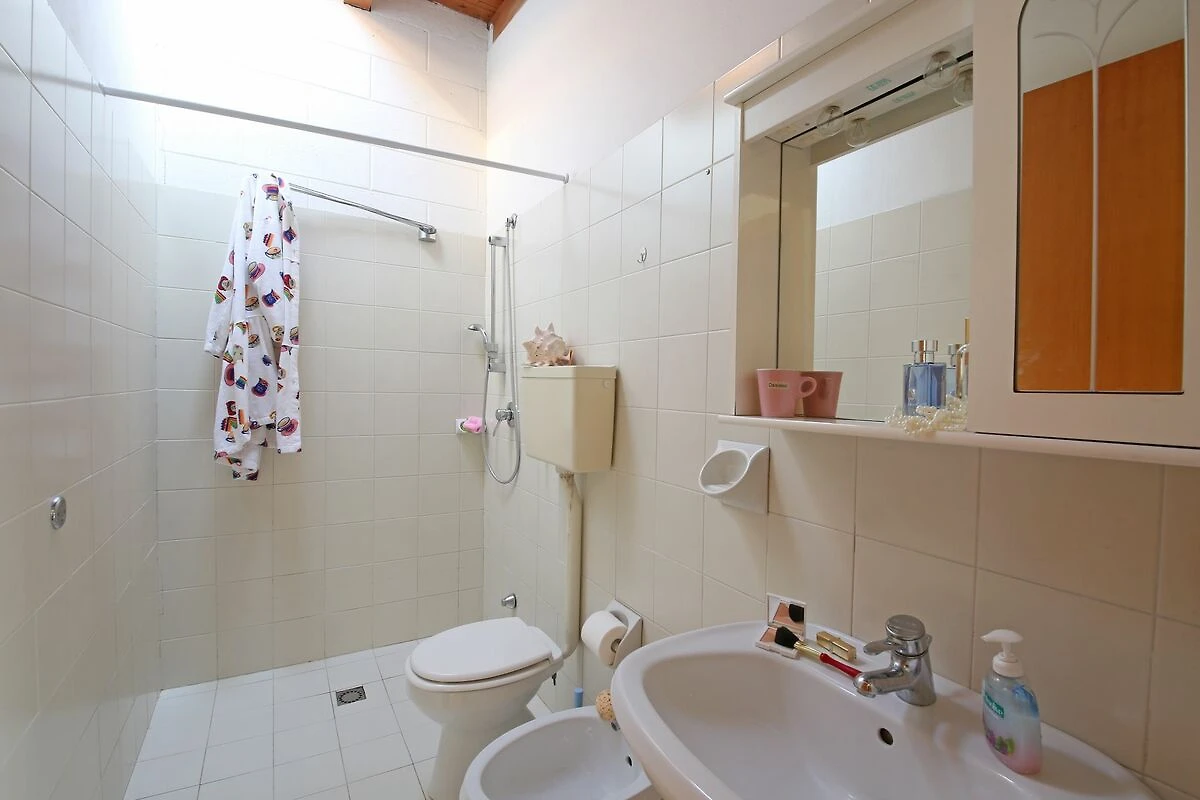 Die einfach und zweckmässig eingerichtete Wohnung A2 bietet Platz für max. 4 Personen inkl. Babys und liegt im Erdgeschoss oder im 1. Stock. Die Unterkunft besteht aus einem Schlafzimmer mit Doppelbett. Im Wohnbereich bietet ein Bettsofa zwei weitere Schlafplätze. Ebenfalls im Wohnbereich befindet sich die gut eingerichtete Küche mit Geschirr, Besteck, Töpfen, einem Gasherd, einer Filterkaffeemaschine, einer Mikrowelle, einem Wasserkocher sowie einem Kühlschrank mit Eisfach. Das Badezimmer verfügt über eine Dusche, ein WC, ein Waschbecken und teilweise über ein Bidet. Der Balkon (bei Unterkunft im 1. Stock) oder der Sitzplatz mit Tisch, Stühlen und 2 Liegestühlen sowie der kleine Garten (bei Unterkunft im Erdgeschoss) laden zum gemütlichen Entspannen ein, während sich die Kinder auf dem Spielplatz oder am Pool austoben können. SAT-TV und ein Safe sind vorhanden. Die Fahrzeit ab der ital. Grenze beträgt ca. 2h. Hinweis: Wenn Sie mehr als eine Unterkunft benötigen, ist dies bei uns in der Regel möglich, da wir über mehrere Objekte des gleichen Haustyps verfügen.