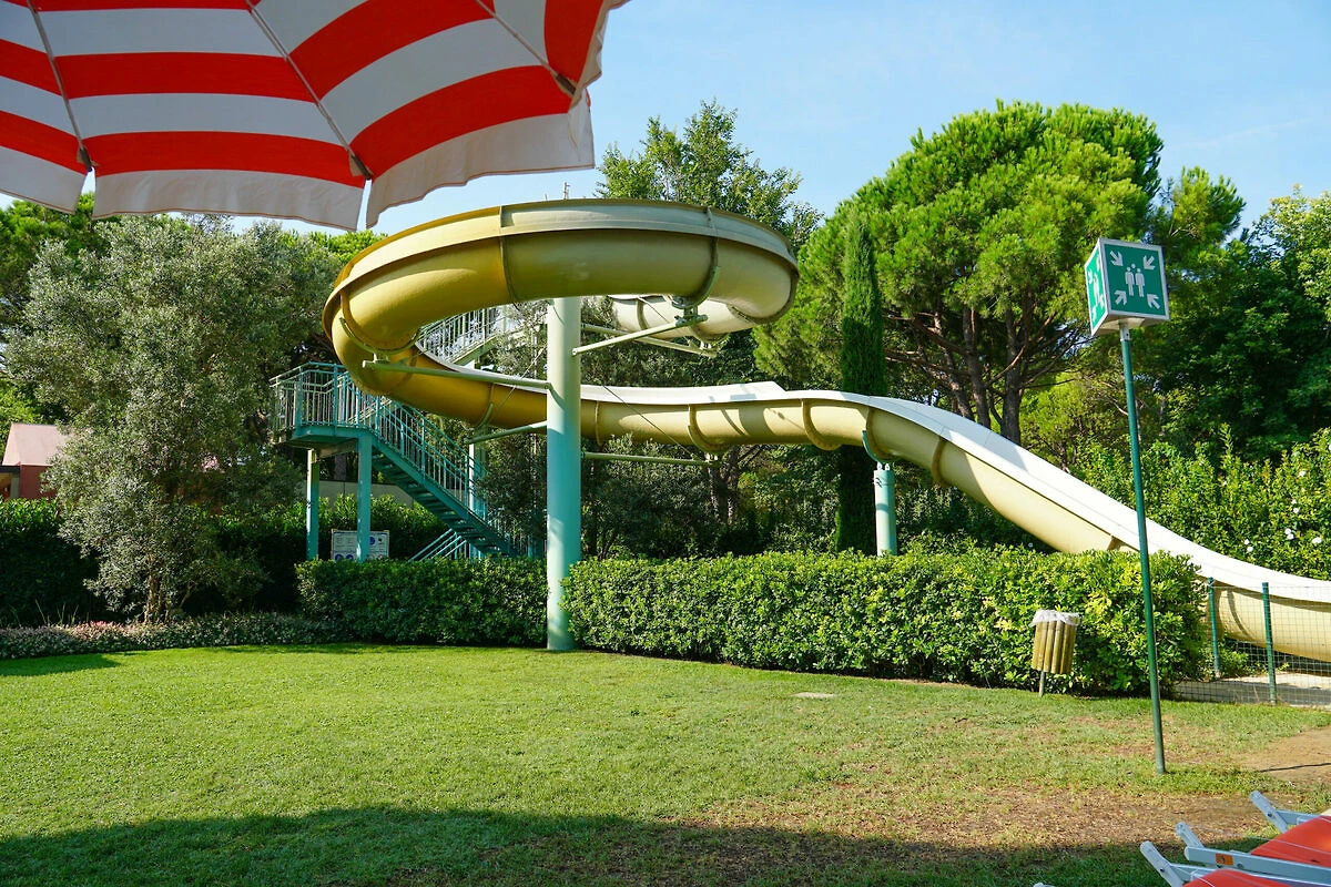 Geboten werden ein Schwimmbad für Erwachsene mit Massagedüsen und der neuen Wasserrutsche „Toboga“ (Höhe 6 m) sowie ein Kinderbecken mit Rutsche. Die Gäste von Italy Camping Village können die beiden Wasserparks von Camping Union Lido (ca. 400 m entfernt) am Montag und Donnerstag benutzen.