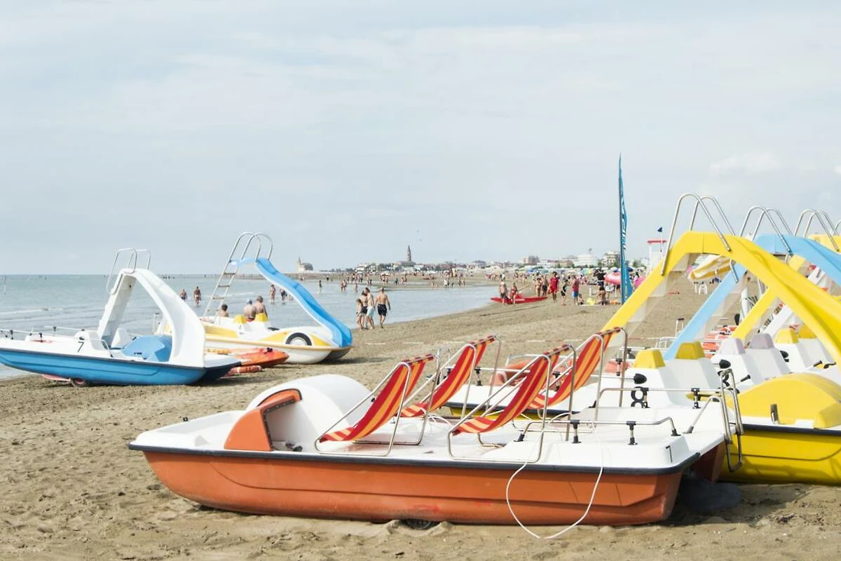 Über einen kurzen Weg durchs Grüne gelangt man vom Feriendorf in einer Minute an den schönen, weitläufigen Strand von Levante, der Sie in seiner Breite und mit seiner schönen Lage überraschen wird. Auf der einen Seite sehen Sie die Altstadt von Caorle, im Vordergrund das Sanktuarium der Madonna dell’Angelo, auf der anderen Seite die Mündung des Kanals Nicesolo und die wunderschöne Lagune. Der Sandstrand ist völlig kostenlos und nicht mit Liegen ausgestattet. Allerdings gibt es nur ein paar Schritte in Richtung Altstadt die Möglichkeit Liegen und Sonnenschirme zu mieten.