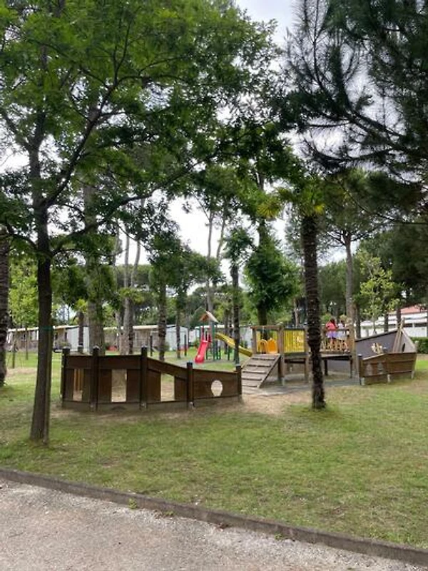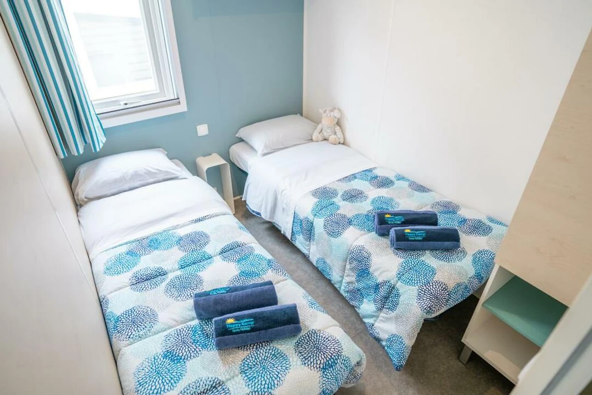Die Unterkunft Happy Premium ist modern und hübsch eingerichtet. Das Mobilhome bietet Platz für 7 Personen und besteht aus einem Elternschlafzimmer mit Doppelbett sowie zwei Kinderzimmern mit je zwei Einzelbetten. Eine weitere Schlafgelegenheit ist im Wohnzimmer. An allen Schlafzimmerfenstern befinden sich Moskitonetze. Die gut eingerichtete Küche befindet sich im Wohnbereich und verfügt über 4-Flammen-Gasherd, Geschirr, Besteck und Kochtöpfe sowie Kühlschrank mit Eisfach. Das Badezimmer verfügt über eine Dusche sowie Waschbecken und WC. Die halb überdachte Holzterrasse mit Tisch, Stühlen und zwei Liegen/Liegestühlen lädt zum gemütlichen Entspannen ein, während die Kinder sich auf dem Spielplatz oder am Pool austoben können. Eine elektrische Grillplatte ist vorhanden. Hinweis Wenn Sie mehr als eine Unterkunft benötigen, ist dies bei uns in der Regel möglich, da wir über mehrere Objekte des gleichen Haustyps verfügen.