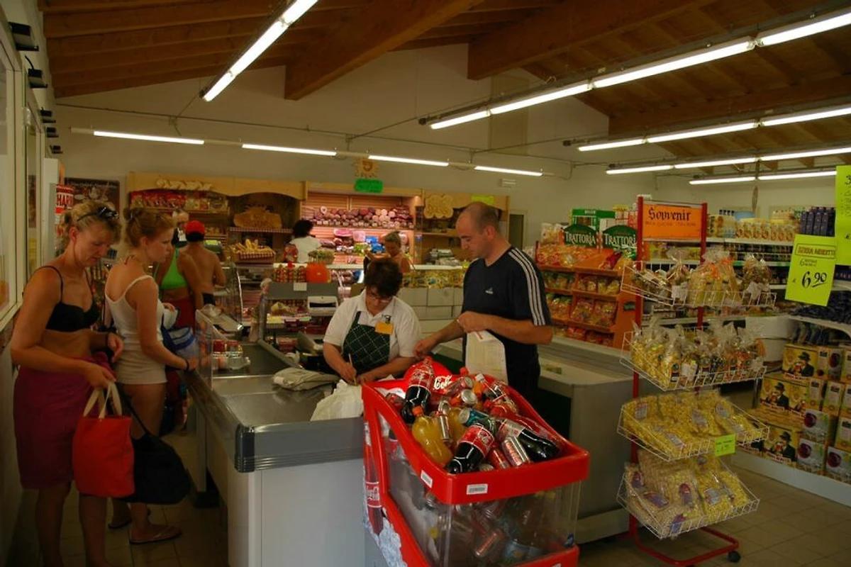 Im Supermarkt finden Sie frisches Obst und Gemüse, Brot, Aufschnitt, Käse, und andere Lebensmittel. Die Anlage verfügt auch über einen Bazar mit Tabakwaren, Zeitungen, Souvenirs und Sportartikeln.