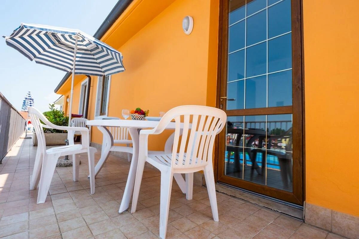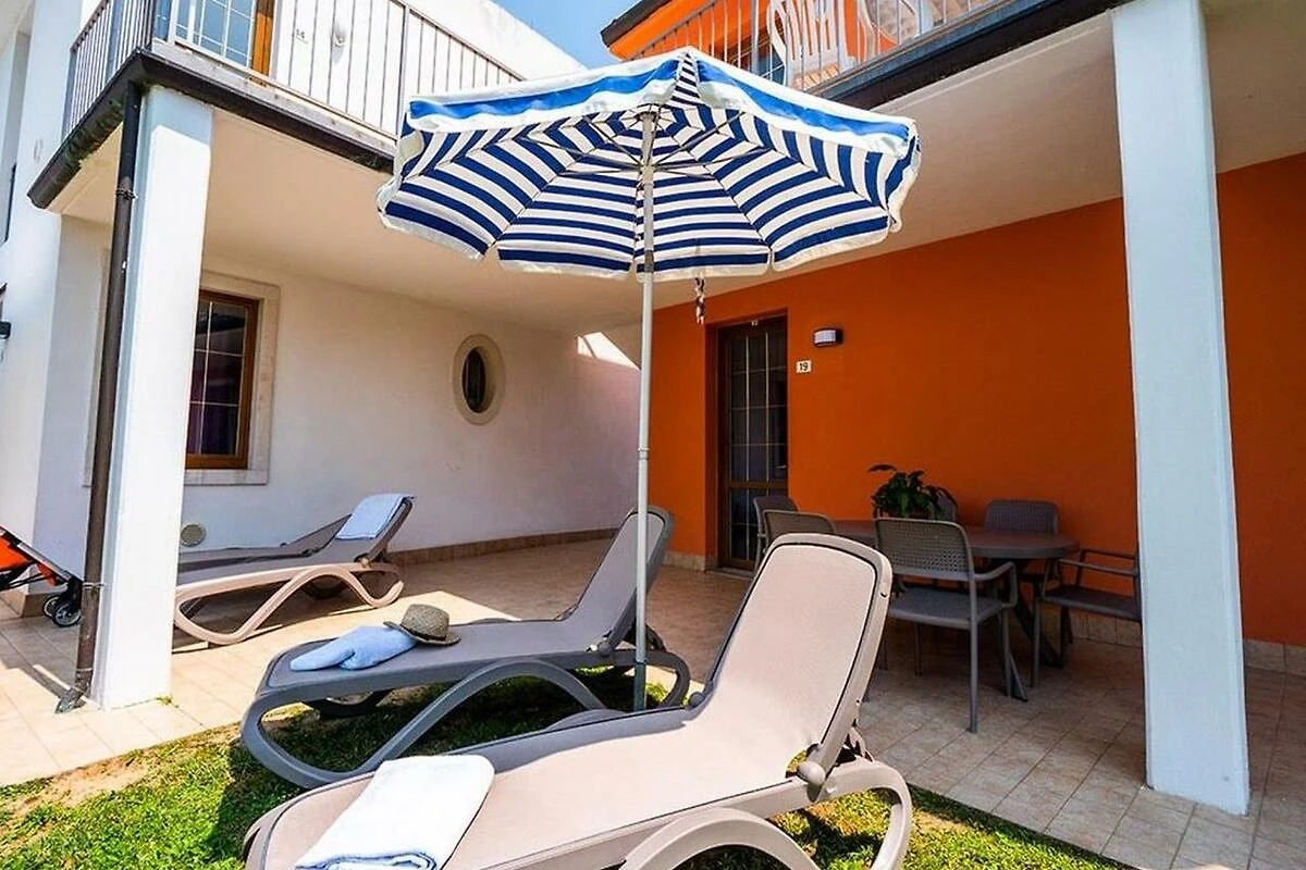 Die Wohnung Premium bietet Platz für max. 6 Personen. Sie verfügt über ein Schlafzimmer mit einem Doppelbett sowie ein Kinderzimmer mit einem Einzel- und einem Stockbett. Zwei weitere Schlafplätze bietet das ausziehbare Sofa im Wohnzimmer. Die Küche befindet sich im Wohnbereich und verfügt über einen Herd, Geschirr, Besteck, Töpfe, Kaffeemaschine sowie einen Kühlschrank mit Eisfach. Das Badezimmer ist mit einer Dusche, einem WC, einem Haartrockner sowie einem Waschbecken ausgestattet. Die Terrasse mit kleinem Garten mit Tisch, Stühlen und zwei Sonnenliegen, lädt zum gemütlichen Entspannen ein und bietet einen wunderbaren Blick auf die Poolanlage. Fahrzeit ab ital. Grenze ca. 3h. Hinweis: Wenn Sie mehr als eine Unterkunft benötigen, ist dies bei uns in der Regel möglich, da wir über mehrere Objekte des gleichen Haustyps verfügen.