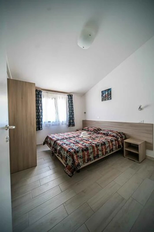 Das Holiday Home Residence im Erdgeschoss oder Erdgeschoss und 1. Stock mit eigenem Garten (teilweise eingezäunt) ist für max. 5 Personen geeignet und besteht aus zwei Schlafzimmer, eines mit zwei Einzelbetten, die zu einem Doppelbett zusammengeschoben werden können und eines mit zwei Einzelbetten. Im Wohnzimmer gibt es ein Bettsofa, welches zwei weitere Schlafgelegenheiten bietet. Der Wohnbereich ist mit einem TV ausgestattet. Die Kochnische, welche komplett mit Geschirr, Besteck, Töpfen, einer Mikrowelle, einer italienischen Espressokanne und Kühlschrank mit Eisfach eingerichtet ist. Das Badezimmer ist mit einer Dusche, einem Waschbecken, einem Bidet und einem WC ausgestattet. Der überdachte Sitzplatz oder Balkon mit Tisch und Stühlen lädt zum gemütlichen Entspannen ein, während die Kinder sich auf dem Spielplatz oder am Pool austoben können. Ein eigener überdachter Autostellplatz steht neben der Wohneinheit zur Verfügung. Grenze ca. 4h. Grillen erlaubt (Gas oder Elektrisch). Hinweis: Wenn Sie mehr als eine Unterkunft benötigen, ist dies bei uns in der Regel möglich, da wir über mehrere Objekte des gleichen Haustyps verfügen.