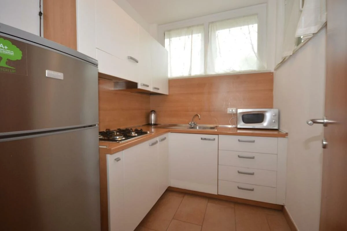 Die Unterkunft verfügt über eine gut eingerichtete Küche mit Gasherd, Geschirr, Besteck, Töpfen, Filterkaffeemaschine, Mikrowelle sowie Kühlschrank mit Eisfach. Auch Einkaufsmöglichkeiten liegen in nächster Nähe. Falls Sie lieber in einem Restaurant essen möchten, das Stadtzentrum von Lignano-Sabbiadoro bietet sehr viel Auswahl.