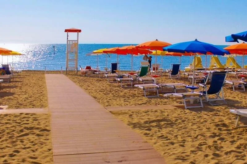 Der wunderschöne flachabfallende Sandstrand von Lignano Sabbiadoro ist nur einen Steinwurf von der Unterkunft entfernt und somit ideal zu Fuss zu erreichen. Der breite Sandstrand eignet sich besonders für Familie mit kleinen Kindern. Am Strand haben Sie die Möglichkeit Beach-Volley oder Tischfussball zu Spielen. Selbstverständlich können Sie auch ein Tretboot mieten und das grosse, weite Meer geniessen. Zudem gibt es am Strand auch einen Mini Club, so dass Ihre kleinsten schnell neue Freundschaften aus aller Welt schliessen können. Alles in Allem also der ideale Ort, um sich bei einem Sonnenbad zu entspannen oder sich einer der Sportaktivitäten zu widmen. Für eine Abkühlung sorgt die Strandbar, in der Sie neben den leckersten Drinks auch einen schnellen, erfrischenden Imbiss geniessen können. Bademeister sorgen den ganzen Tag für Sicherheit. Der Strand ist ausserdem mit breiten Gehwegen ausgestattet, so dass der Durchgang mit dem Kinderwagen gewährleistet ist.