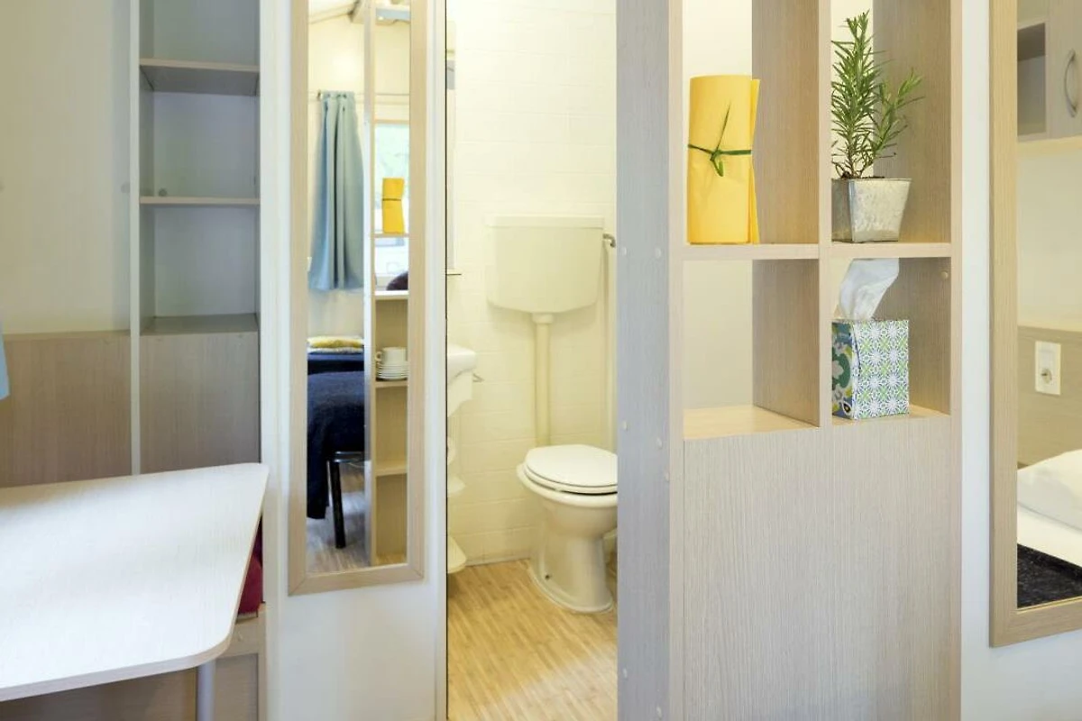 Die Unterkunft für max. 3 Personen (bei Belegung mit 3 Personen darf die dritte Person nicht älter als 12 Jahre sein) und besteht aus einem Schlafzimmer mit zwei Einzelbetten. Das 3. Bett entsteht durch das Absenken des Tisches im Wohnbereich (Das Bett misst ca.170 cm). Die gut eingerichtete Küche befindet sich im Wohnbereich und verfügt über Geschirr, Besteck und Pfannen sowie Kühlschrank mit Eisfach. Das Badezimmer verfügt über eine Dusche sowie Waschbecken und WC. Der Sitzplatz mit Tisch und Stühlen lädt zum gemütlichen Entspannen ein. Grillen erlaubt. Fahrzeit ab ital. Grenze ca. 4h. Hinweis Wenn Sie mehr als eine Unterkunft benötigen, ist dies bei uns in der Regel möglich, da wir über mehrere Objekte des gleichen Haustyps verfügen.