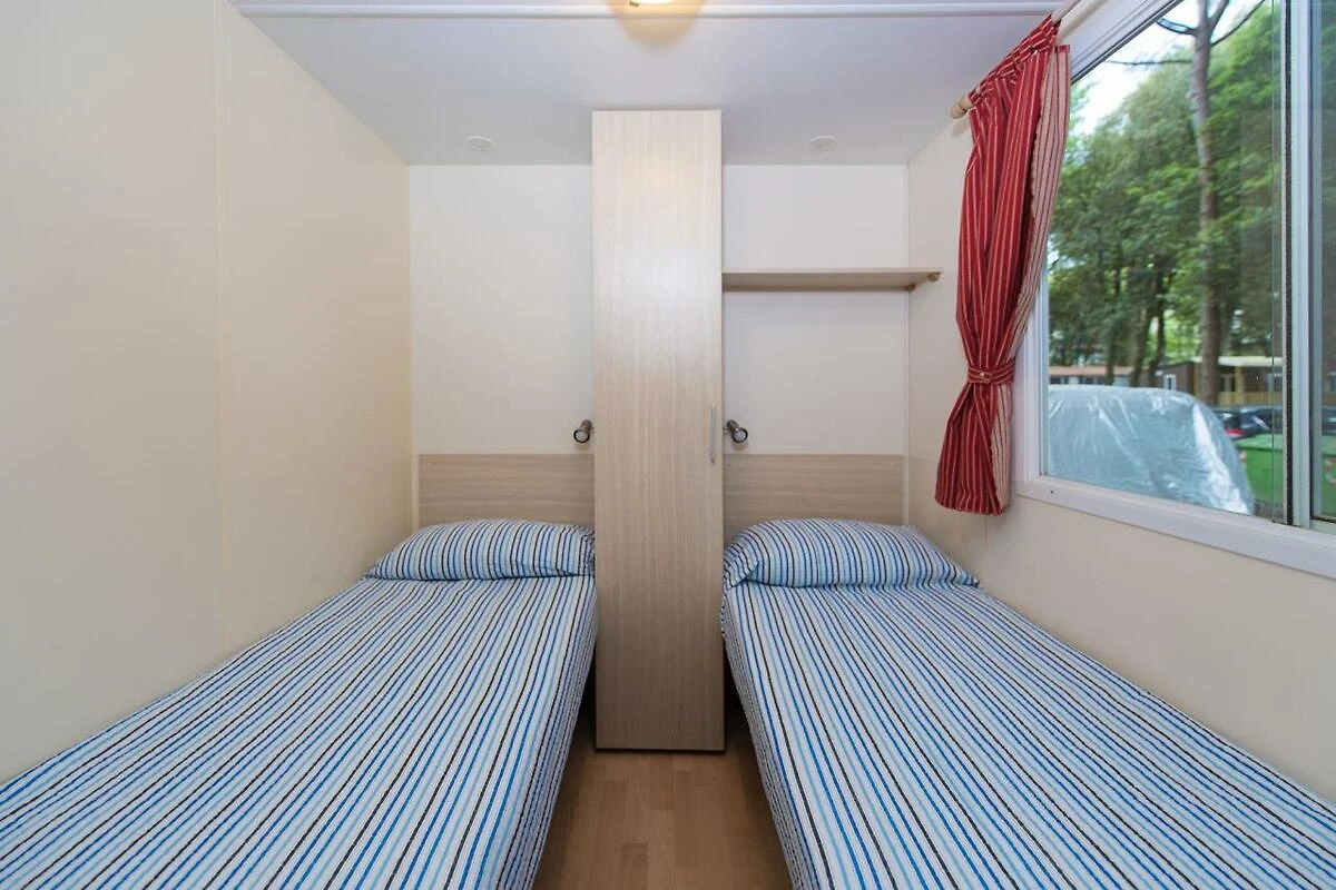 Das Mobliehome Mimosa bietet Platz für max. 5 Personen und ist komplett eingerichtet. Es verfügt über ein Wohnzimmer mit einer gut eingerichteten Küche mit Geschirr, Besteck, Töpfen und einem Kühlschrank. Das Badezimmer ist mit Dusche/WC und einem Waschbecken ausgestattet. Das Mobilehome hat zwei Schlafzimmer (1 Zimmer mit Ehebett, und 1 Kinderzimmer mit zwei Einzelbetten). Die Sitzbank im Wohnzimmer lässt sich in einen weiteren Schlafplatz umfunktionieren. Der überdachte Sitzplatz mit Tisch und Stühlen lädt zum gemütlichen Entspannen ein, während die Kinder sich auf dem Spielplatz austoben können. Kissen, Decken und Bettwäsche sind inbegriffen. Das Grillen ist erlaubt. Fahrzeit ab ital. Grenze ca. 3.5h. Hinweis Wenn Sie mehr als eine Unterkunft benötigen, ist dies bei uns in der Regel möglich, da wir über mehrere Objekte des gleichen Haustyps verfügen.