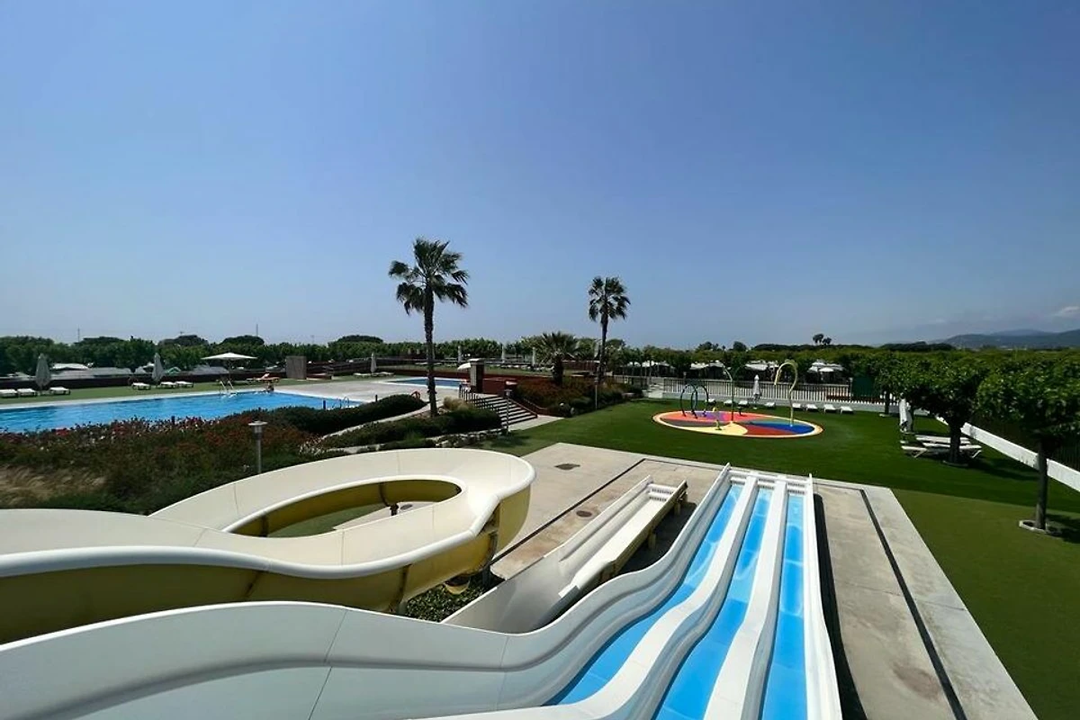 Die familienfreundliche Unterkunft befindet sich in der wunderschönen Ferienanlage Els Pins. Das Feriendorf liegt an der nördlichen Costa de Barcelona, zwischen dem malerischen Fischerstädtchen Malgrat de Mar und dem grösseren Küstenort Blanes mit seinen vielfältigen Geschäften, Sehenswürdigkeiten und gastronomischen Angeboten. Das Feriendorf befindet sich in privilegierter Lage direkt am Meer und ist somit ideal für Familien. Für Jung und Alt steht ein breites Sportangebot und Animationsprogramm mit Abendunterhaltung zur Verfügung (von Anfang Juli bis Ende August). Auf Kinder wartet der Miniclub und zwei Spielplätze, wo sie sich nach Herzenslust austoben können. Die Anlage verfügt über zwei Poolanlagen (die Poolanlage Mediterránea ist nur in der Hochsaison geöffnet) mit jeweils einem Erwachsenenpool und einem Kinderpool. Die Poolanlage Oasis wartet ausserdem mit grossen Wasserrutschen auf. Für Ihr leibliches Wohl ist durch den Supermarkt und das Restaurant mit Terrasse direkt bei der Poolanlage sowie eine Bar für kleine Imbisse gesorgt. Weiter stehen Ihnen ein Fahrradverleih, Schliessfächer in der Rezeption sowie Münzwaschmaschinen und Trockner zur Verfügung.