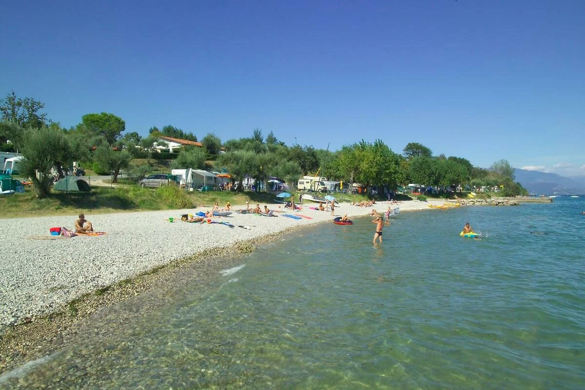 Das Feriendorf grenzt direkt an den wunderschönen breiten Kieselstrand und erstreckt sich auf rund 450 Meter. Am Strand finden Sie eine kleine Bar, wo Sie sich mit Eiscreme, Paninis und frischen Getränken verpflegen können. Geniessen Sie das saubere Wasser, dank dem flachabfallenden Strand, auch hervorragend mit Kindern! Bojen für eigene Bote sind vorhanden.
