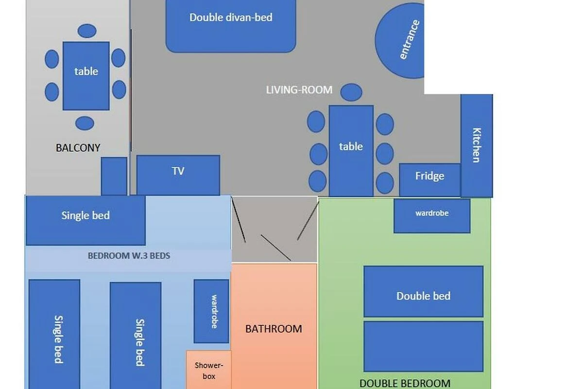 Die schöne und modern eingerichtete Wohnung Tipo C mit 65 Quadratmetern bietet Platz für max. 6 Personen (eine Überbelegung mit einem Baby im Reisebett ist auf Anfrage möglich). Die Wohnung besteht aus einem Schlafzimmer mit Doppelbett sowie einem weiteren Schlafzimmer mit 3 Einzelbetten, von denen zwei bei Bedarf zu einem Doppelbett zusammen geschoben werden können. Im Wohnbereich bietet ein Bettsofa einen weiteren Schlafplatz. Ebenfalls im Wohnbereich befindet sich die gut eingerichtete Küche, die mit Geschirr, Besteck, Töpfen, einem Gasherd (mit 4 Flammen), einer Mikrowelle, einer Kaffeemaschine, einer Spülmaschine sowie einem grossen Kühlschrank mit Eisfach ausgestattet ist. Das Badezimmer verfügt über eine Dusche, ein Waschbecken, ein WC sowie einen Föhn. Der überdachte Balkon mit Tisch, Stühlen und einem Sonnenschirm lädt zum gemütlichen Entspannen ein, während die Kinder sich am Pool vergnügen können. Fahrzeit ab italienischer Grenze ca. 4h. Hinweis: Wenn Sie mehr als eine Unterkunft benötigen, ist dies bei uns in der Regel möglich, da wir über mehrere Objekte des gleichen Haustyps verfügen.