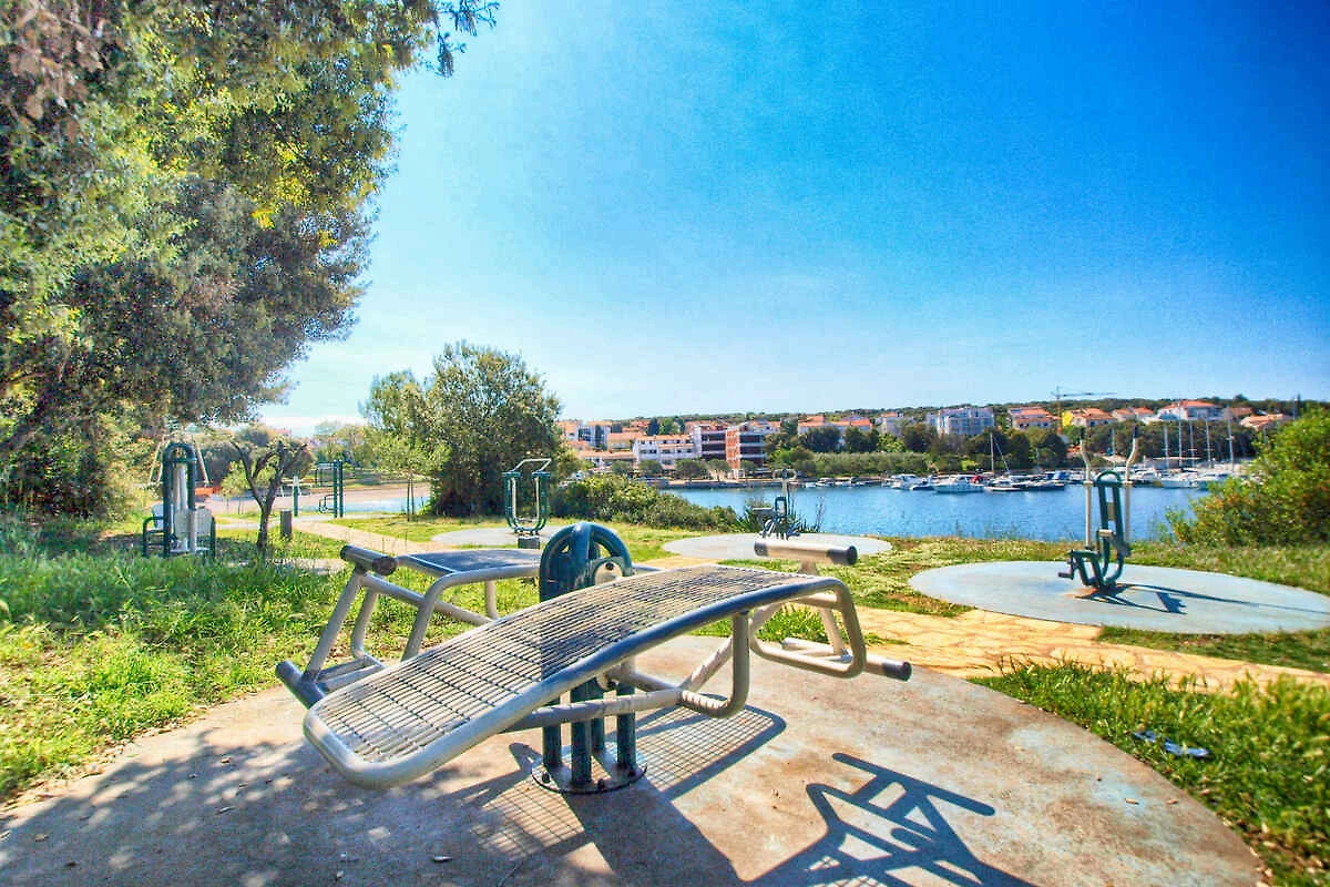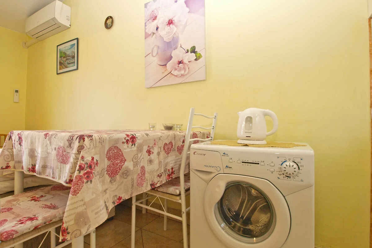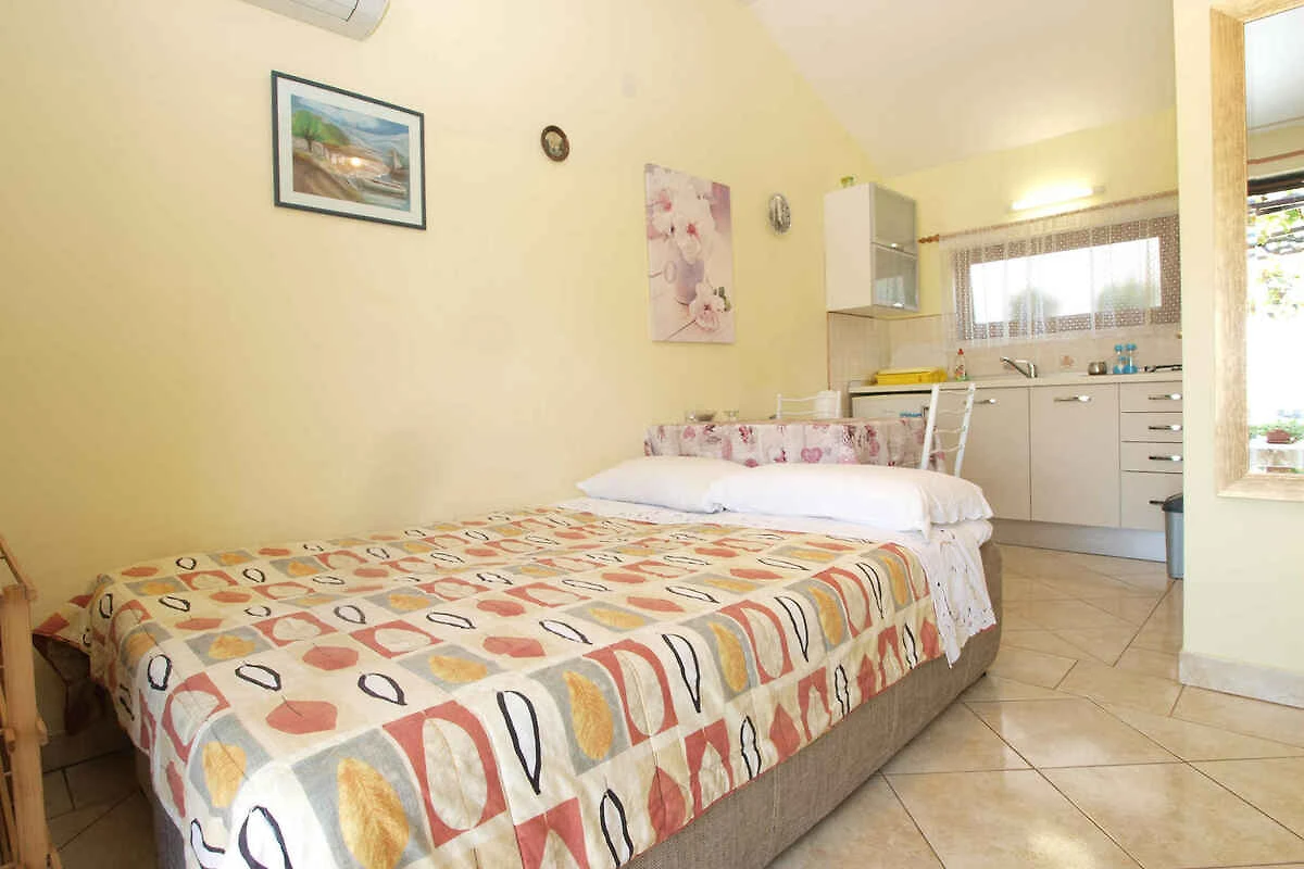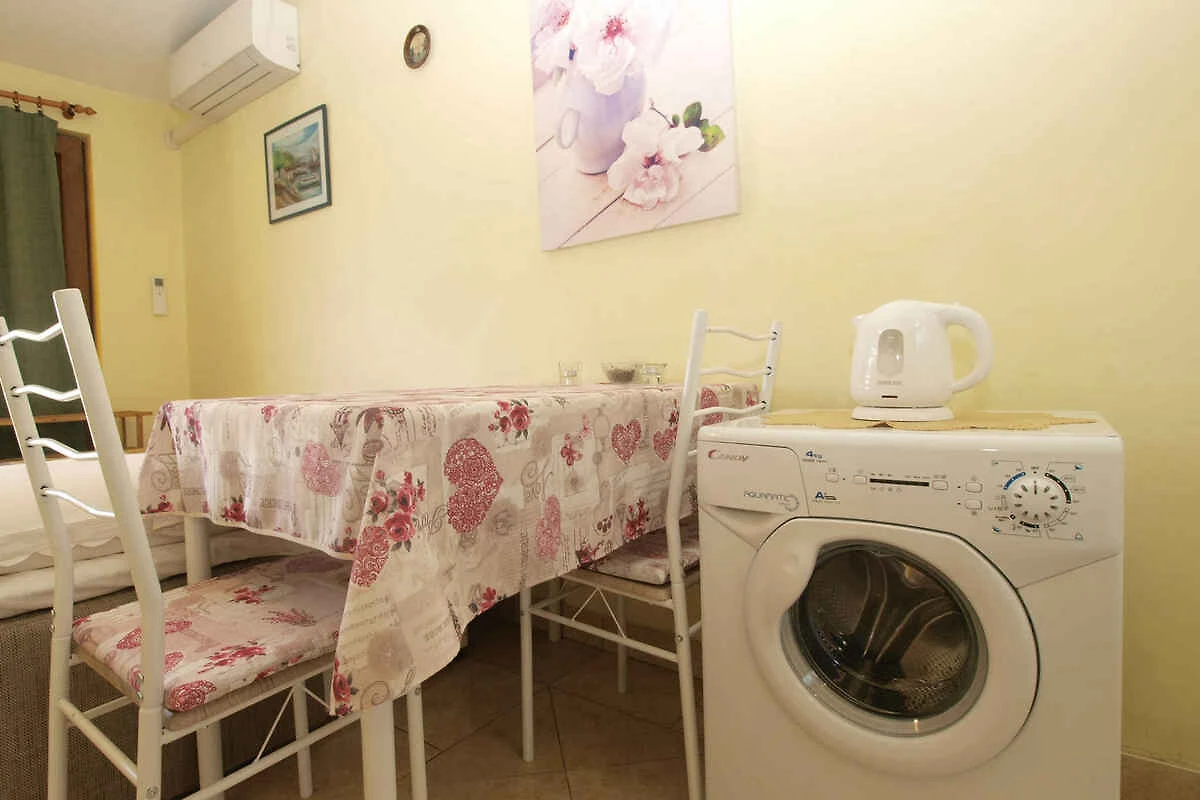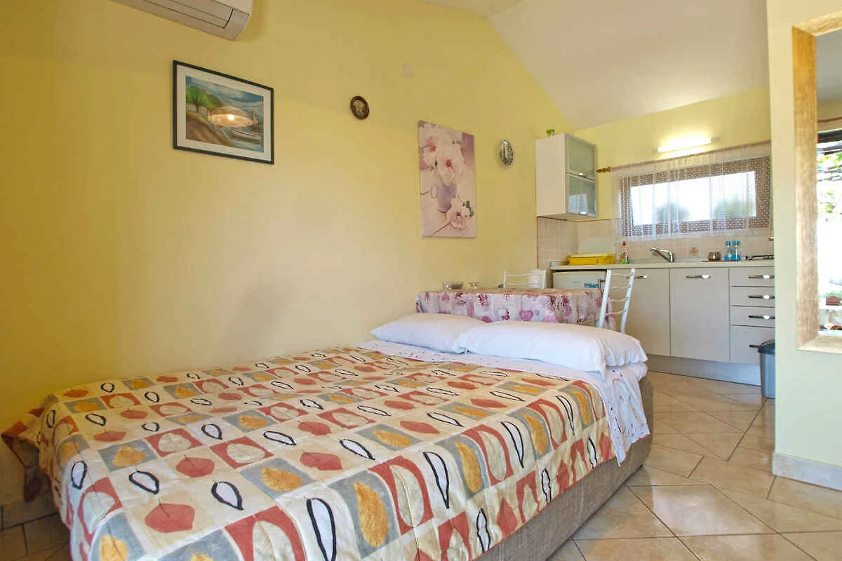 Pula. Die Ferienwohnung befindet sich auf einem 20 qm grossen, geschlossenen Gartengrundstück mit Blumen und Bäumen, von einem Zaun begrenzt. Die Zufahrt erfolgt über eine Nebenstrasse (asphaltiert). Parkplatz auf dem Grundstück.