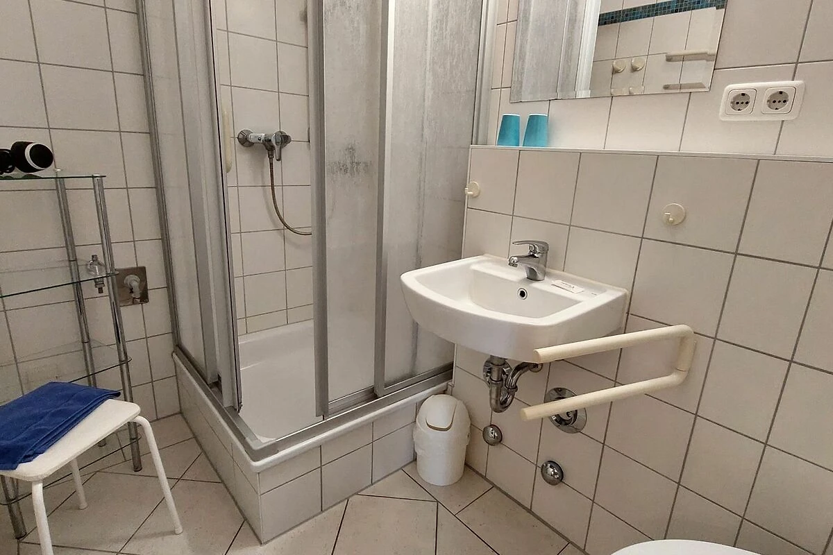 Ein wohnungseigener Stellplatz steht Ihnen im nur 80 m entfernten Parkhaus Granitz kostenfrei zur Verfügung. Halten zum Ein- und Ausparken können kurz vor dem Haus.