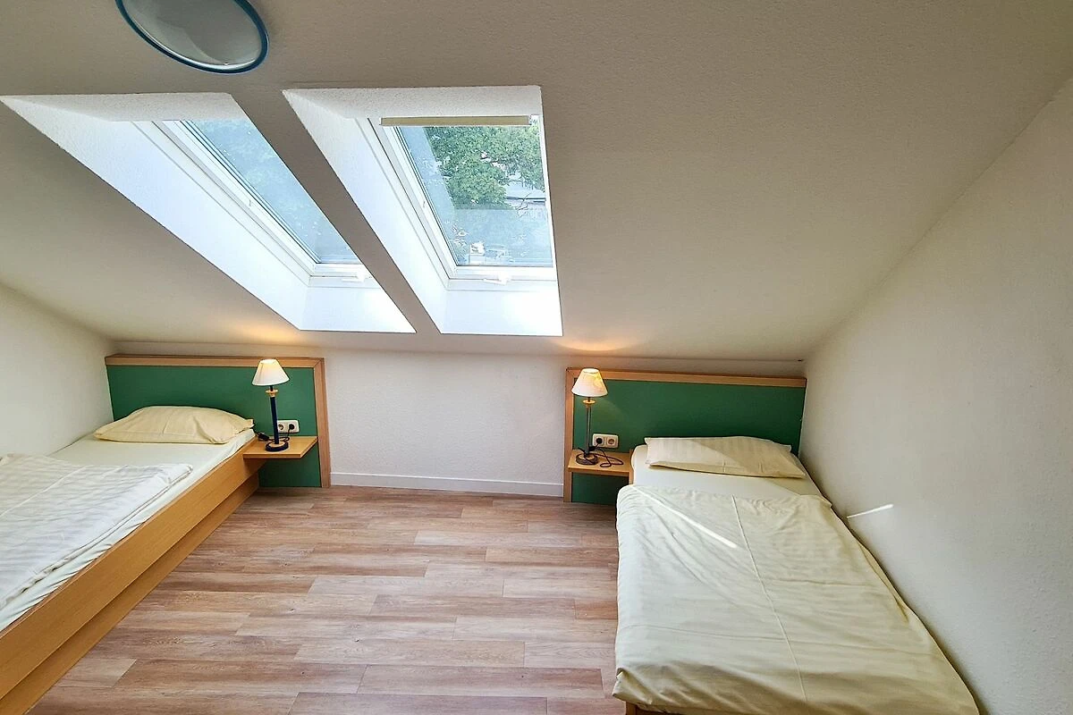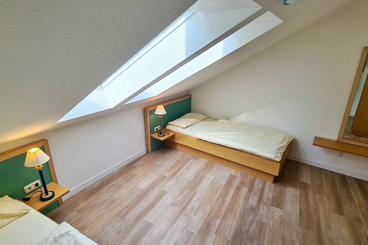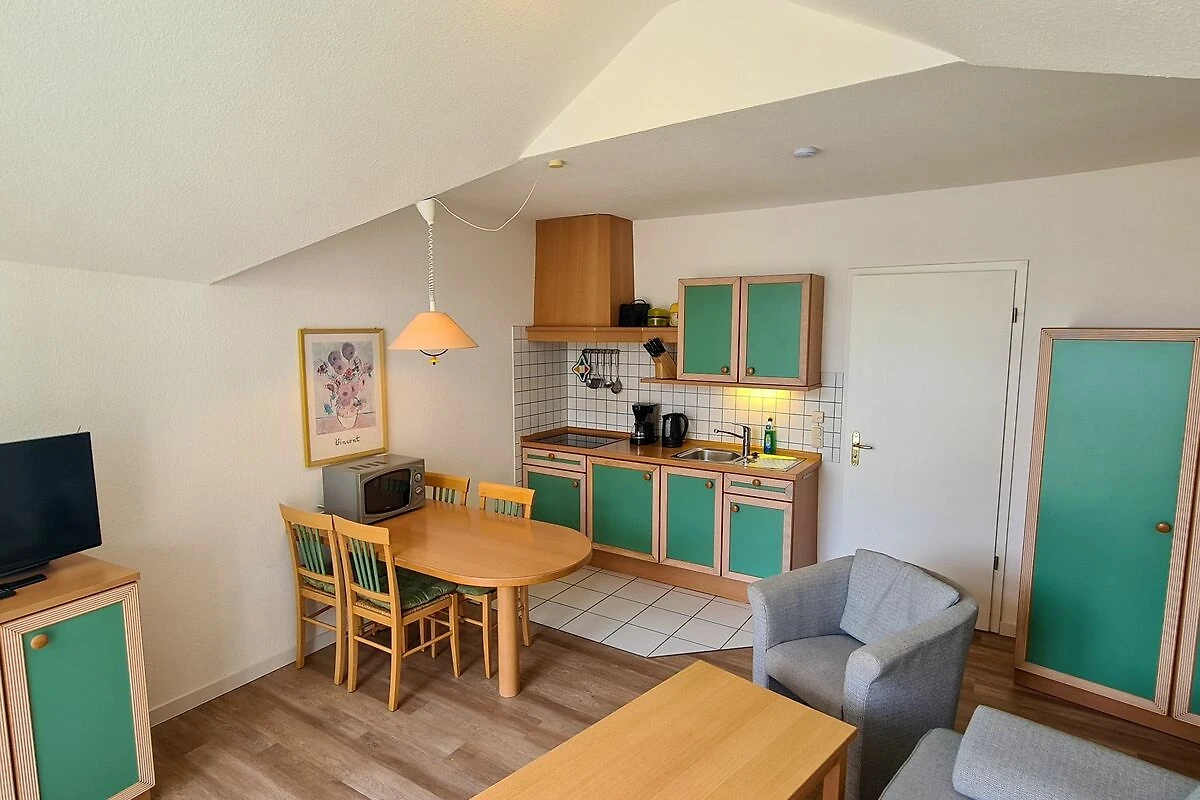 Das modern ausgestattete 2-Raum-Nichtraucher-Appartement im Dachgeschoss ist 42 m² gross.