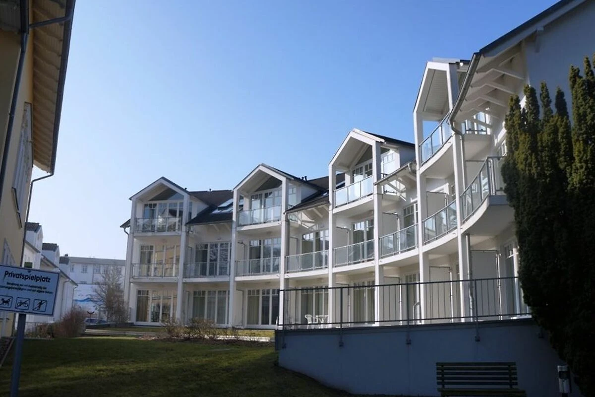 Die Ferienanlage mit 20 Wohneinheiten liegt zentral und doch recht ruhig an der Strandstrasse und Waldpromenade direkt am Abgang zum Strand.