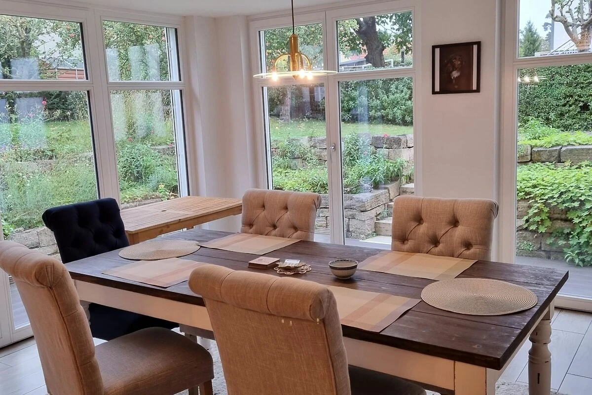 Durch die grossen Glasfronten im Essbereich, blicken Sie auf Ihre Terrassen, sowie den Garten, den Sie gern nutzen dürfen.