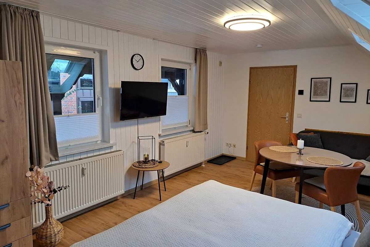 Die Ferienwohnungen zur alten Dachdeckerei liegen unmittelbar am Stadtzentrum von Bad Bevensen. In dem historischen Werkstattgebäude wurden 2023 zwei Wohnungen saniert und liebevoll neu eingerichtet. Die Wohnungen Zunftstube barrierearm im Erdgeschoss und Leiterstube im Obergeschoss sind jeweils für bis zu zwei Gäste geeignet. Parken ist an der Strasse kostenfrei möglich. Den Gästen stehen eine Waschmaschine und ein Trockner im Heizungsraum zur Verfügung. Fahrräder können auf dem Innenhof abgestellt werden.