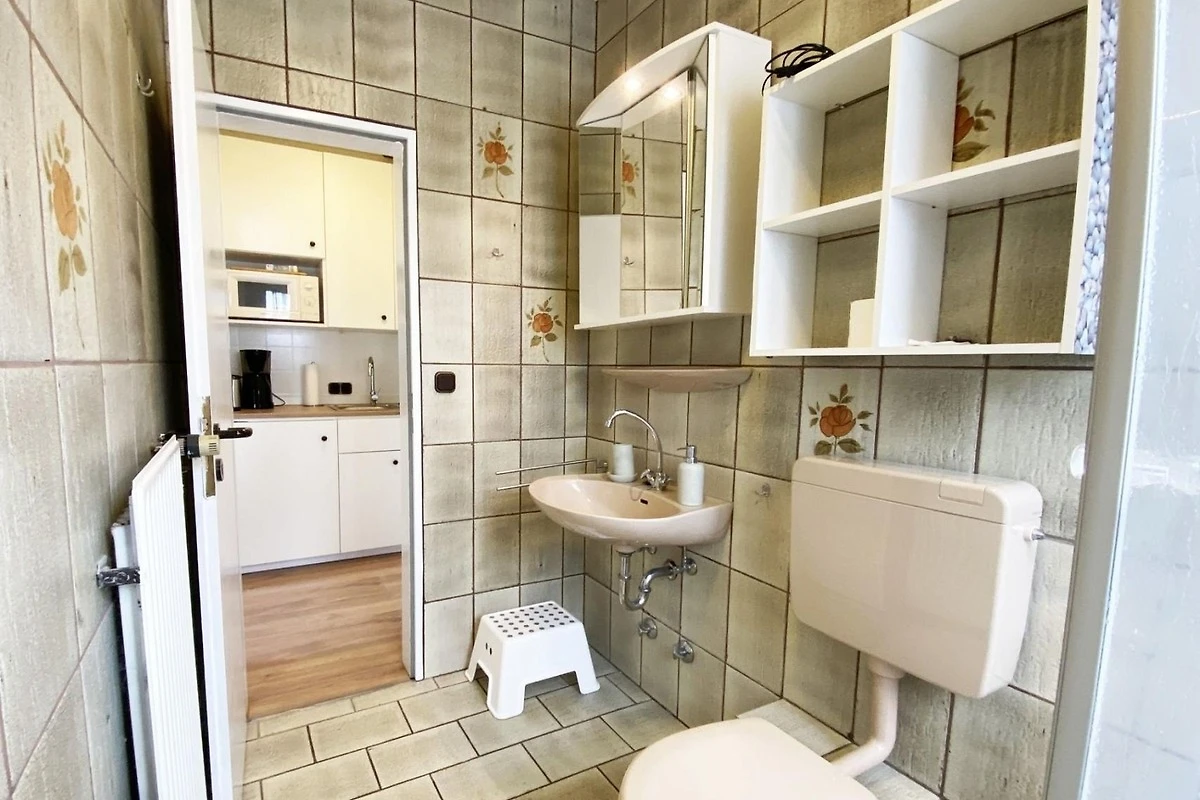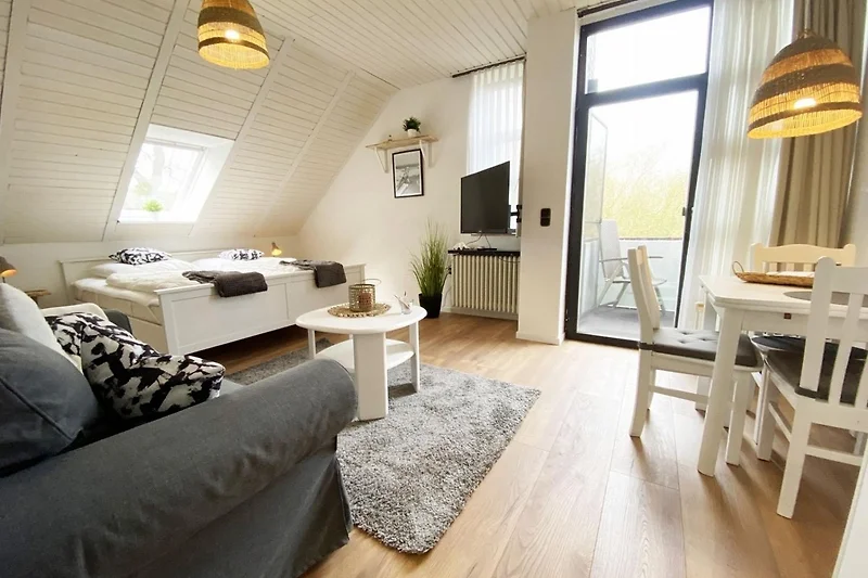 Unser Ferienhaus liegt am Ende einer ruhigen Sackgasse, direkt am Kolksee.Fussläufig erreichen Sie den Dorfplatz von Horumersiel, mit kleinen Souvenirläden, tollen Restaurants und kleinen Geschäften.Der Stadtstrand ist nur wenige hundert Meter entfernt.Das frisch renovierte Apartment verfügt über eine kleine komplett eingerichtete Küchenzeile, gemütlichen, einladenden Sitzmöglichkeiten, einem grossen Doppelbett (2x 90x200cm mit Topper), einem Tageslichtbad mit grosser Dusche, sowie einem Balkon mit Sitzmöglichkeiten.Gemütliches Apartment mit Charme, fussläufig zum Zentrum in Horumersiel und direkt am Kolksee.Erkunden Sie Horumersiel zu Fuss oder mit dem Fahrrad. Entlang der gesamten Küste erstreckt sich ein gut ausgebautes Fahrradnetz.