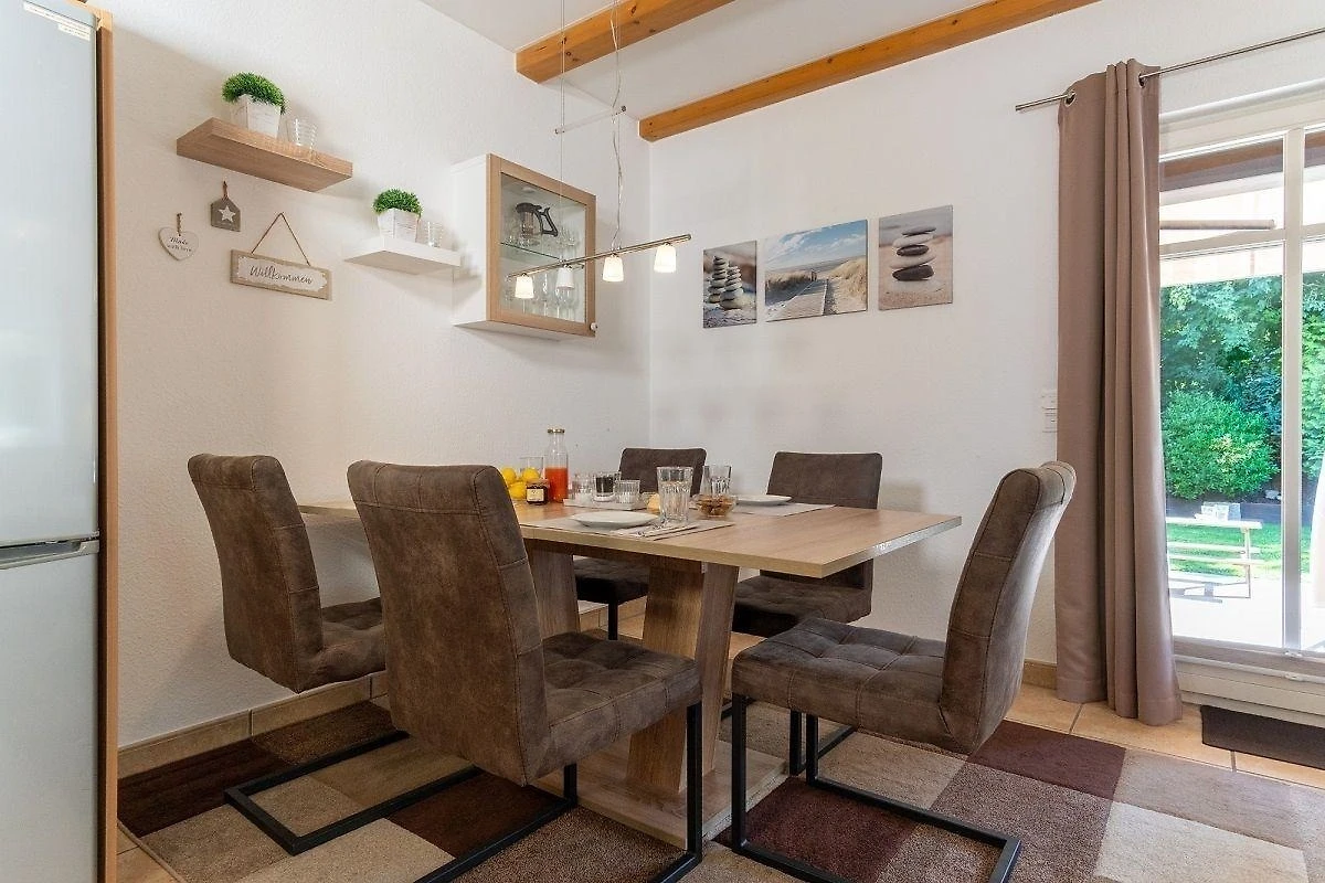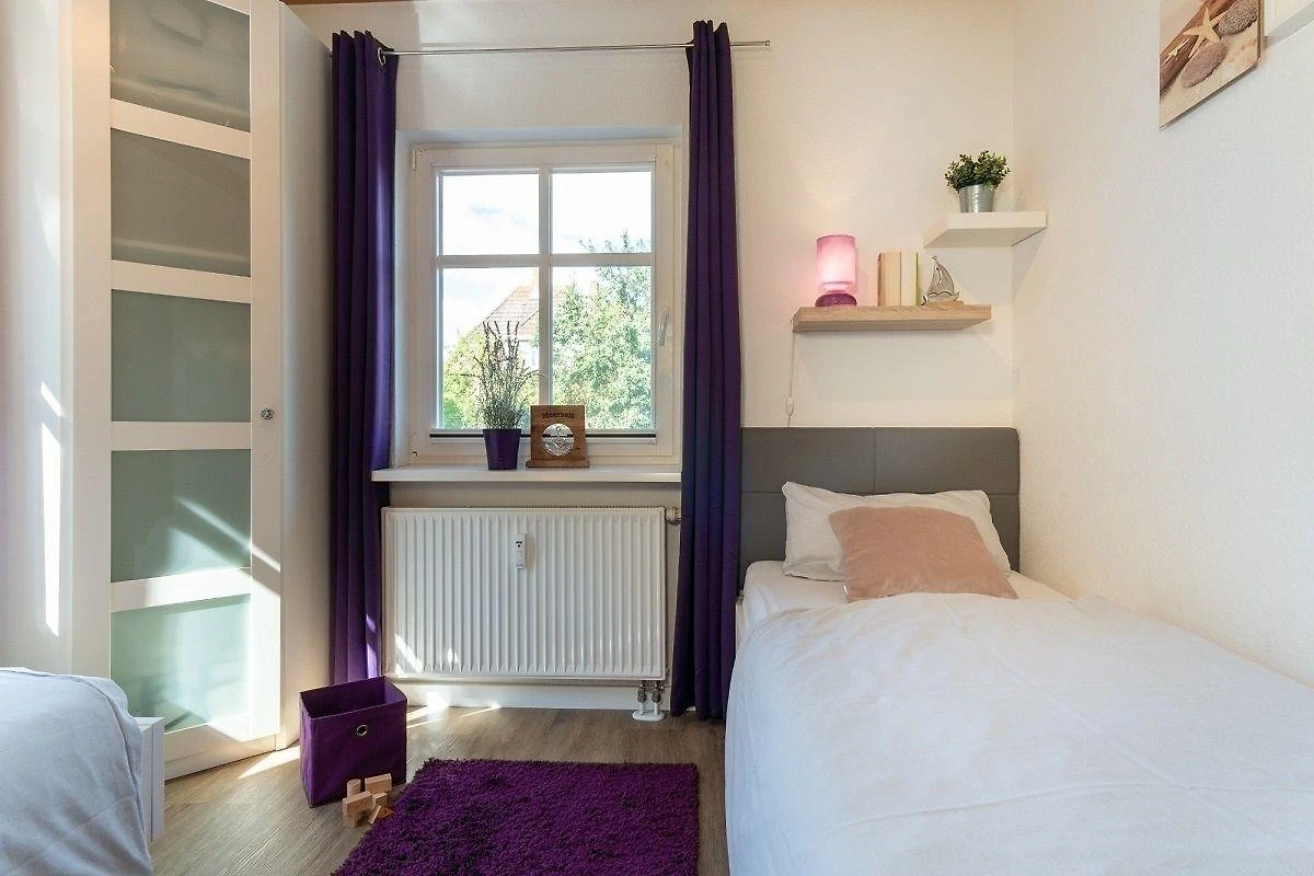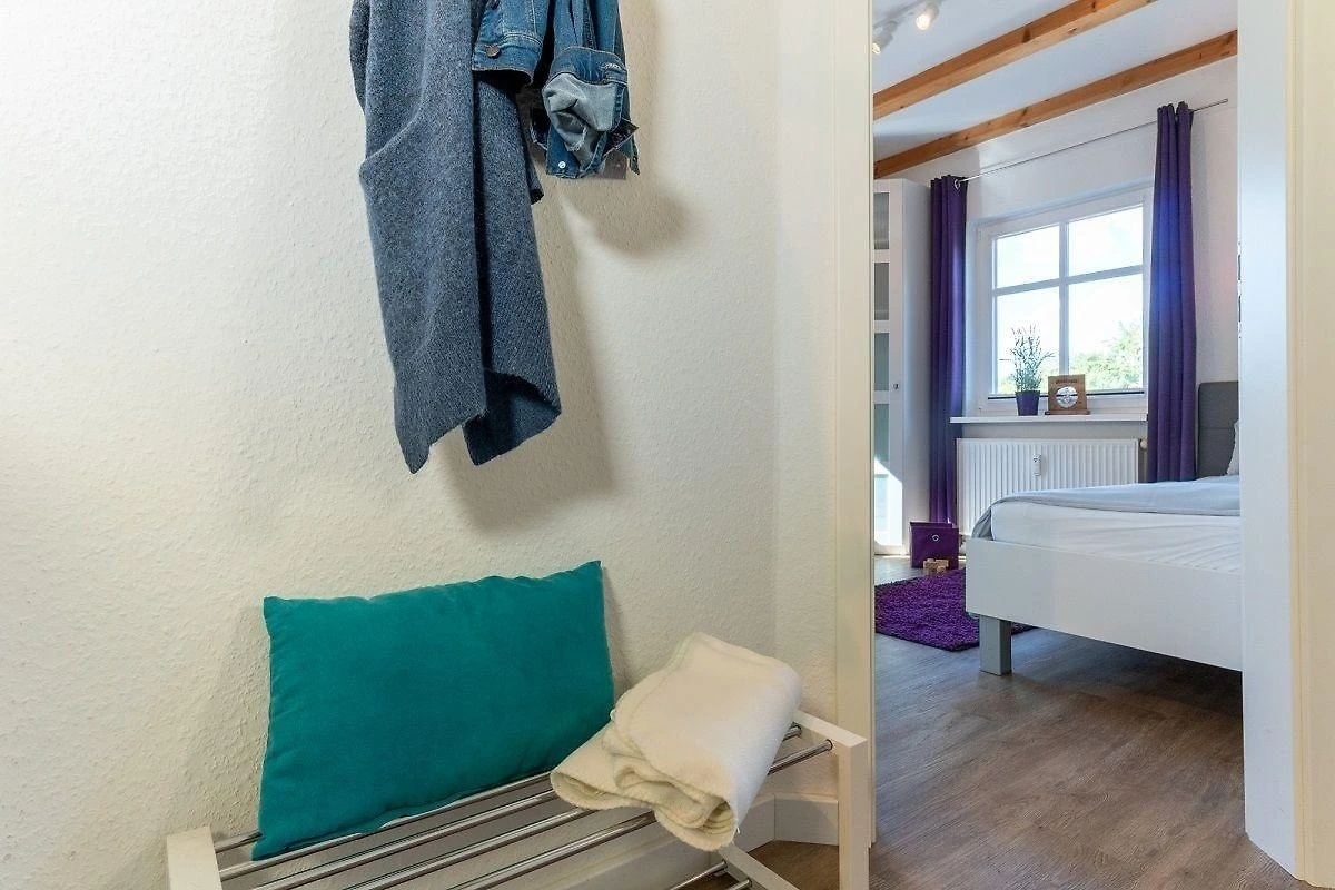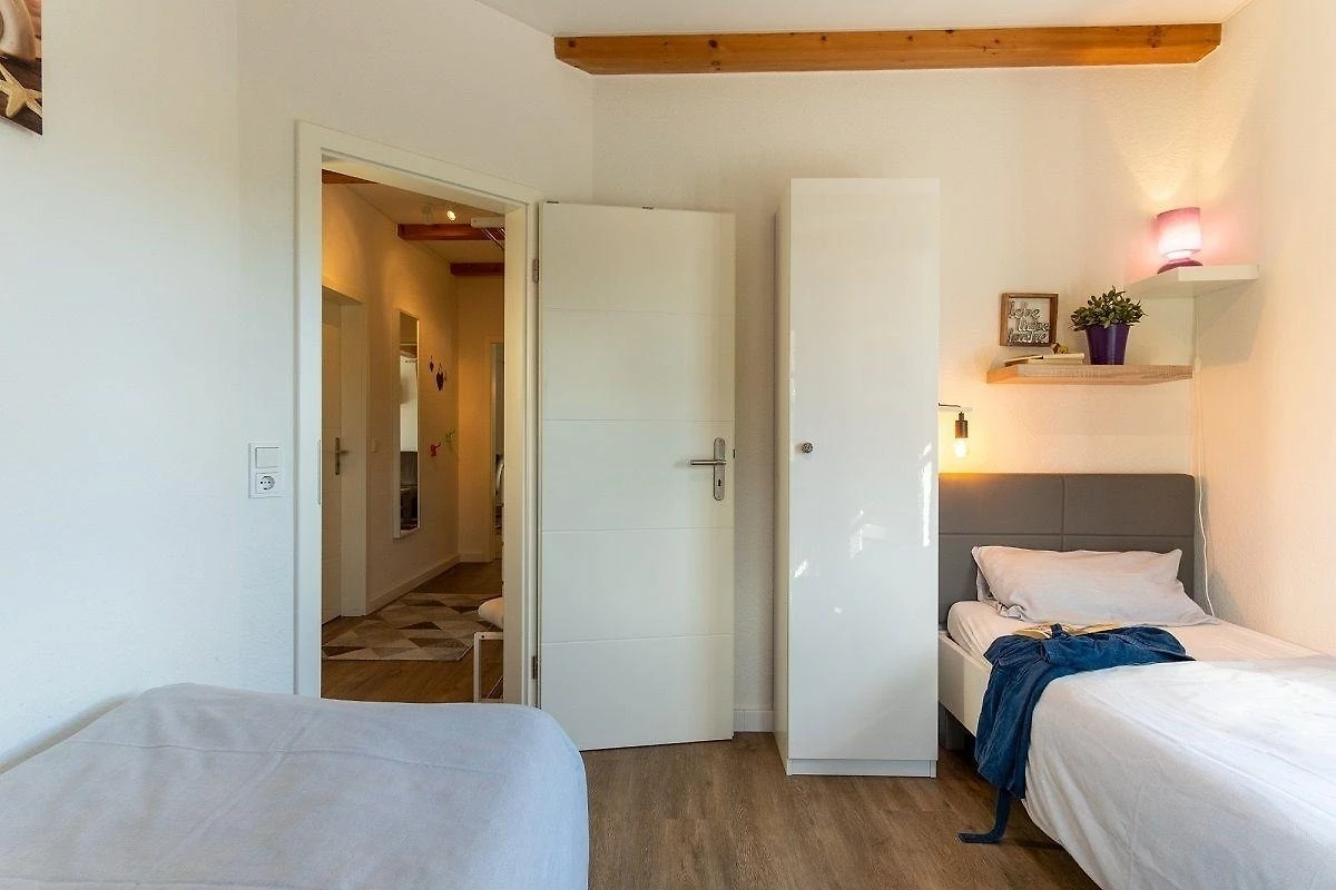 Der sonnige Wohnbereich ist mit einer gemütlichen Sofaecke, Flatscreen-TV und Gesellschaftsspielen ausgestattet. Für eine muckelige Atmosphäre an Schietwettertagen sorgt ein Holzofen. Der angrenzende, offene Küchenbereich ist, für den Urlaubsbedarf, voll ausgestattet. Zusätzlich stehen Ihnen noch ein Backofen, eine Mikrowelle und ein Geschirrspüler zur Verfügung. Das grosse Schlafzimmer verfügt über ein komfortables Doppelbett (2*90*200cm) und das Kinderzimmer wurde mit zwei Einzelbetten, sowie einem Kinderreisebett ausgestattet. Ein kostenfreier Kinderhochstuhl steht Ihnen ausserdem für Ihren Aufenthalt zur Verfügung.