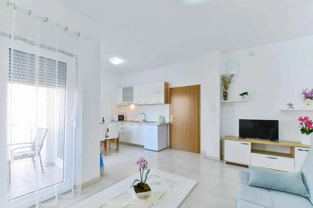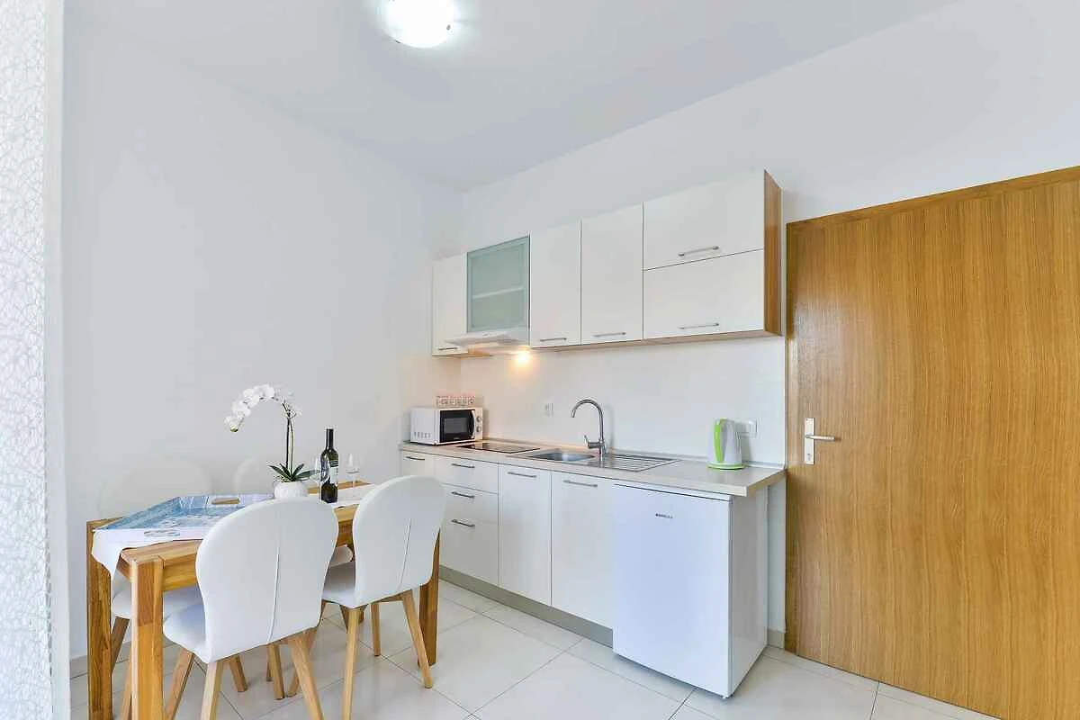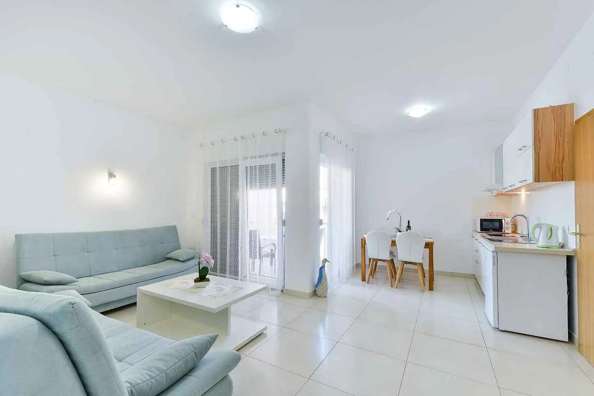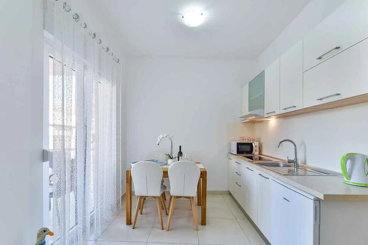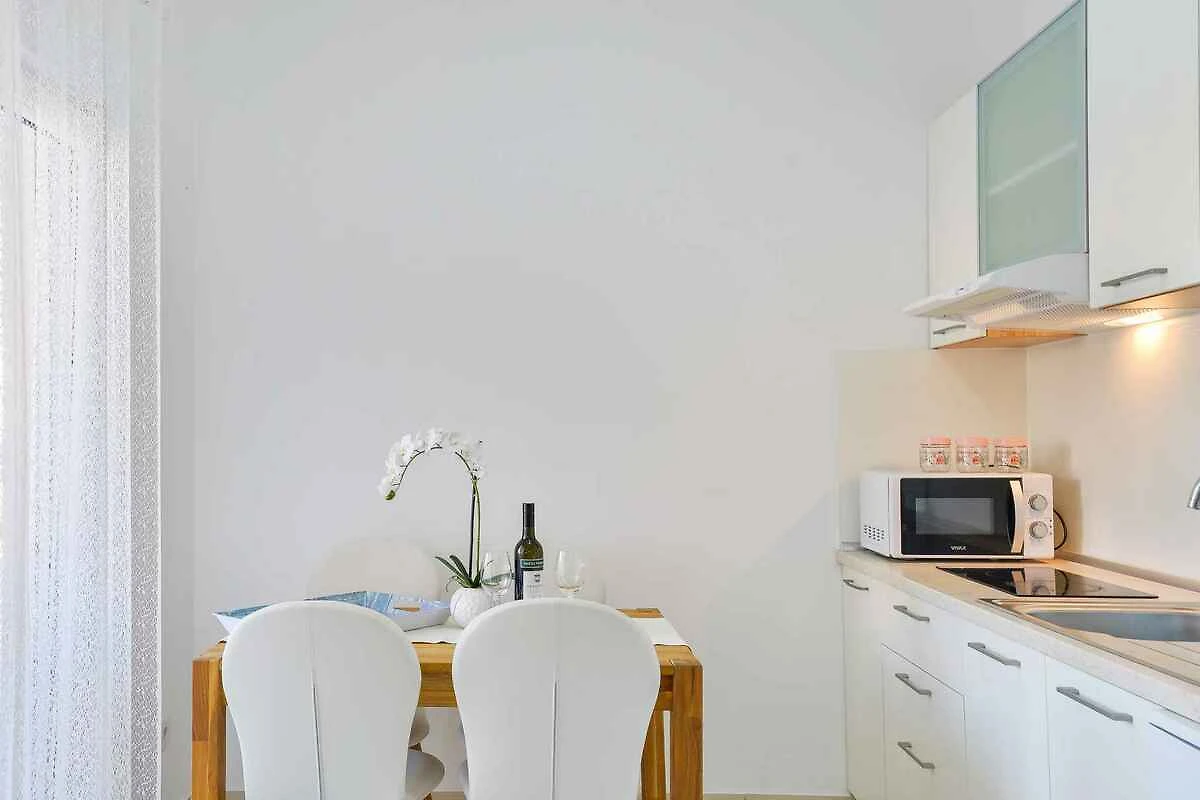 Die Ferienwohnung befindet sich in einem Apartementhaus und ist modern eingerichtet. Das Grundstück liegt in einem Wohngebiet, im Ortszentrum. Auch wegen des Ausblicks vom Grundstück auf das Meer und der sonnigen Lage ist das Domizil beliebt. Zur Nutzung stehen zur Verfügung: Gartendusche, Terrasse und Gartenmöbel.