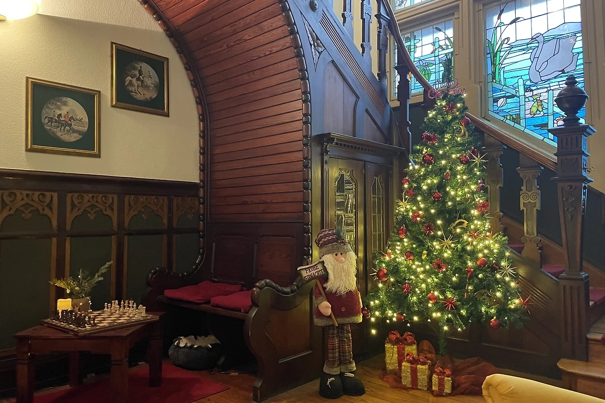 Im Foyer begegnet man sich, spielt eine Runde Schach in der gemütlichen Treppennische oder genießt den fackelnden LED Kaminfeuerschein.