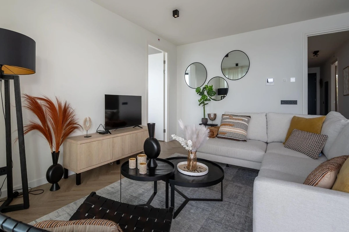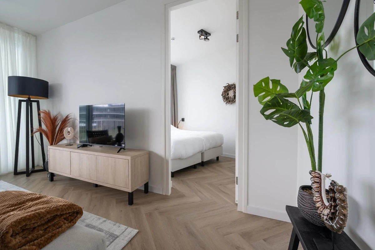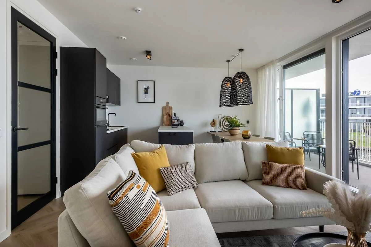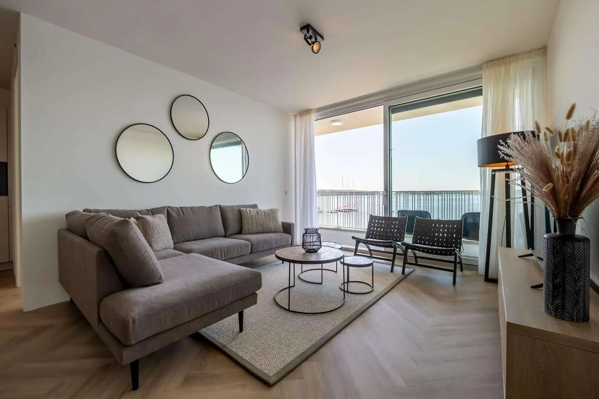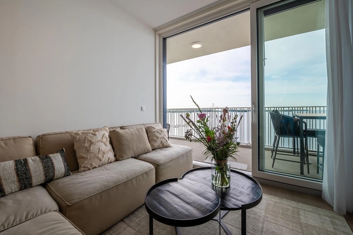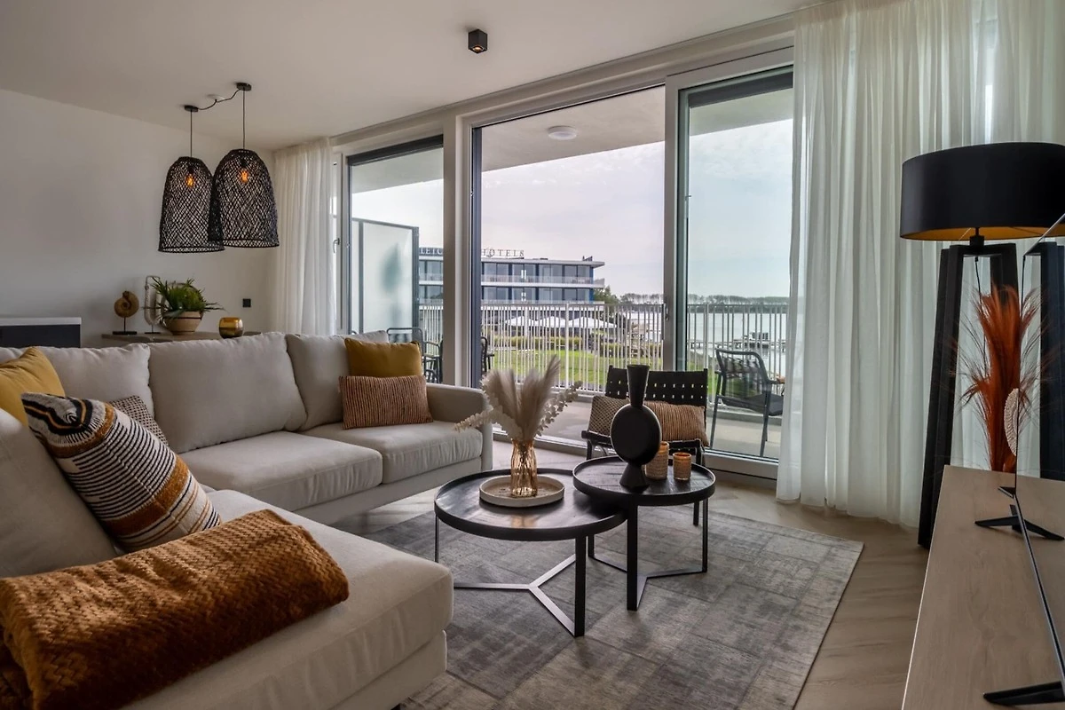 Das helle und attraktiv eingerichtete Wohnzimmer verfügt über eine gemütliche Sitzecke und einen Smart-TV mit Auslandspaket. Vom Wohnzimmer aus haben Sie Zugang zum geräumigen Balkon, auf dem Sie den ganzen Tag lang eine atemberaubende Aussicht auf das weite Veerse Meer genießen können.