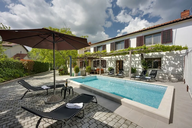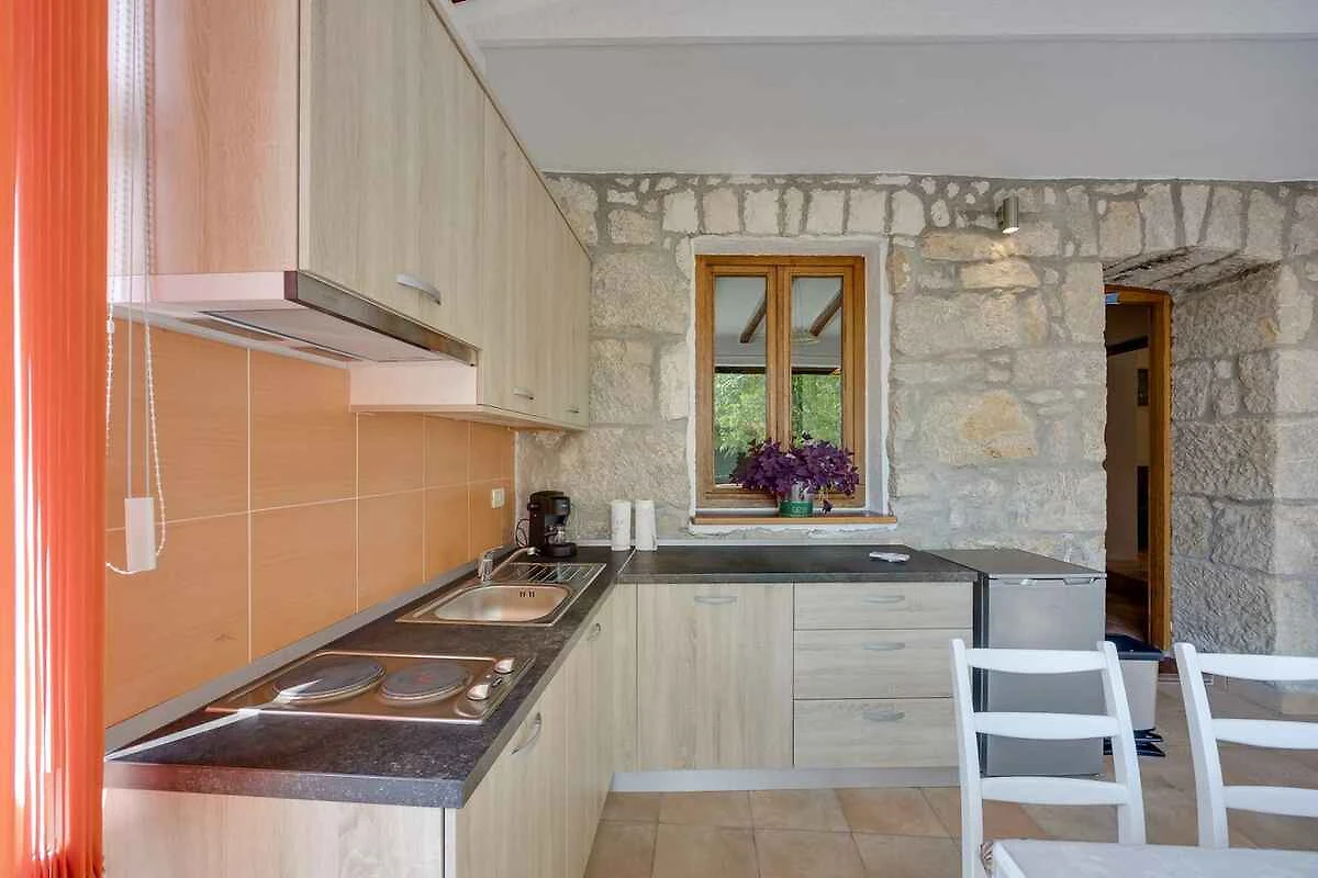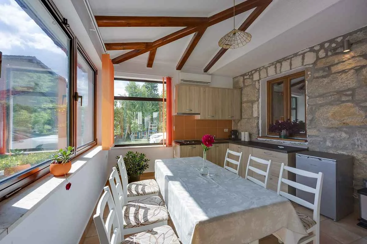 Brest pod Uckom. Das Ferienhaus befindet sich auf einem geschlossenen Gartengrundstück mit Blumen und Bäumen. Der Vermieter wohnt nicht im Haus oder auf dem Grundstück. Dieses Ferienhaus im Dorf Brest unterhalb des Učka-Gebirges ist der ideale Ort, um sich zu entspannen und die Natur in einer wunderschönen ländlichen Umgebung zu geniessen.